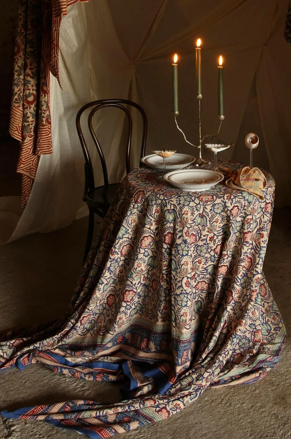 Denne Bluebell Single-dug er trykt i hånden med udskårne træblokke og er åh så alsidig. Det særlige ved denne dug er ikke kun dens håndtrykte skønhed, men også den matchende taske. Denne unikke dug er håndlavet med største omhu i Indien og er fremstillet af 100 % bomuld. Spred den ud til en hyggelig picnic i parken, eller omfavn roen ved havet med en strandseance i dens blide favntag. Uanset om du tager den med til en hyggelig udendørs sammenkomst eller gemmer den væk, sørger den matchende taske for, at din dyrebare dug forbliver beskyttet og klar til dit næste eventyr.