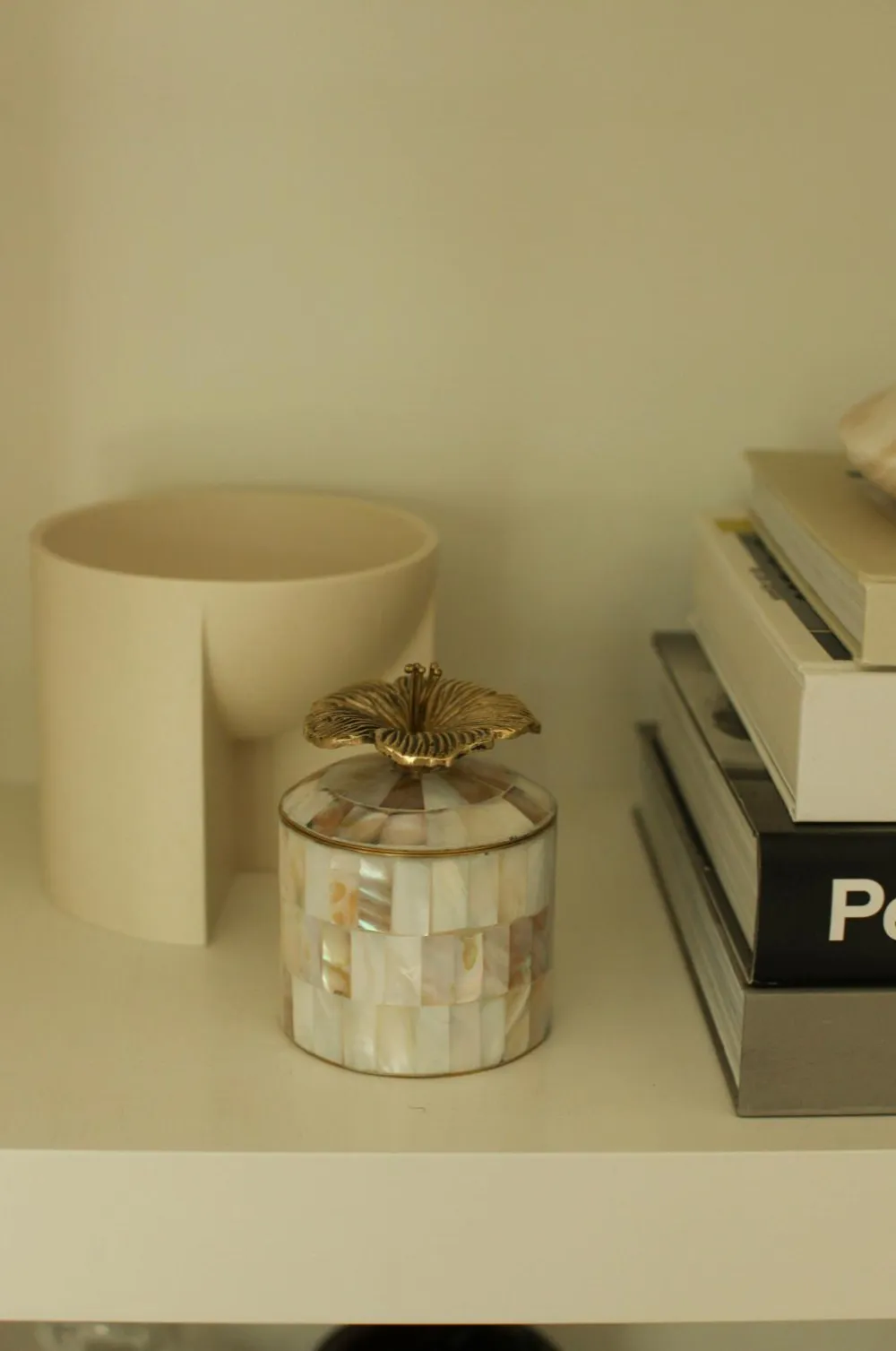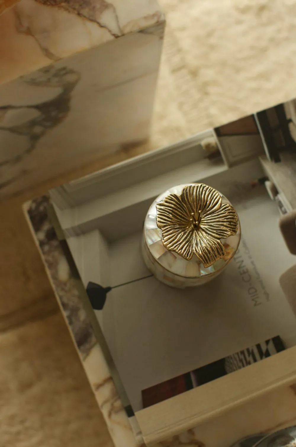 Du kan opbevare alle dine mest værdifulde skatte i denne Hailey Hibiscus Circus Box. Disse æsker er håndlavede i Indien af messing, harpiks og muslingeskaller. Når du køber dette håndlavede, unikke produkt, støtter du de lokalsamfund, hvor vores produkter fremstilles.