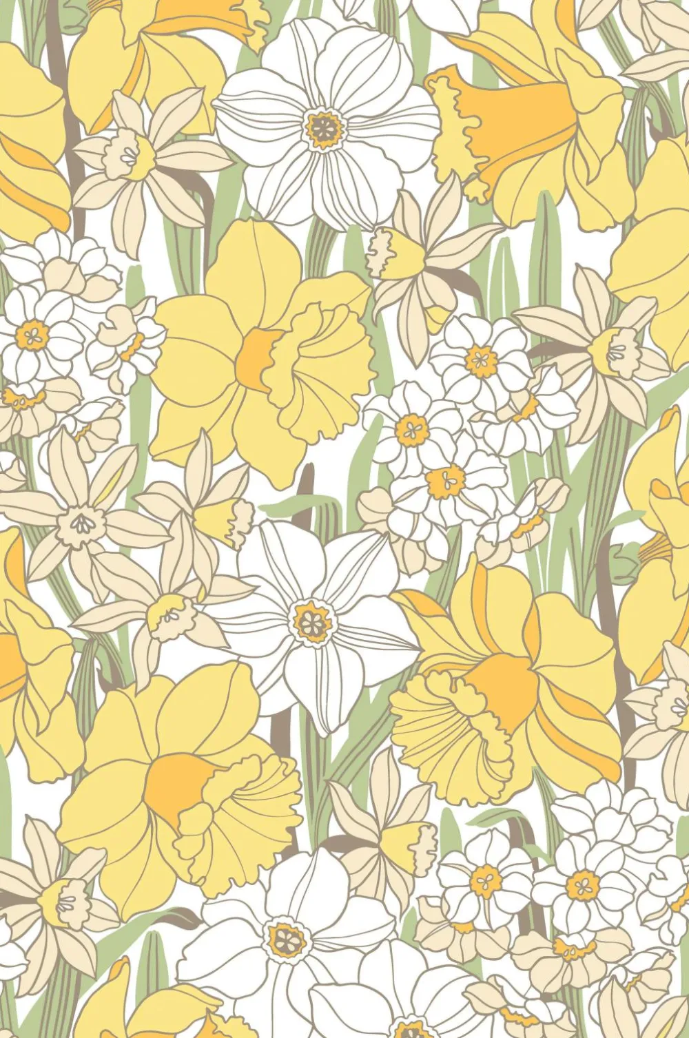 Tapet Påsklilja gul bestiller du på varenr. 1550727-02-0. Tapetet leveres i rulle med længde 10,05 m og bredde 53 cm.