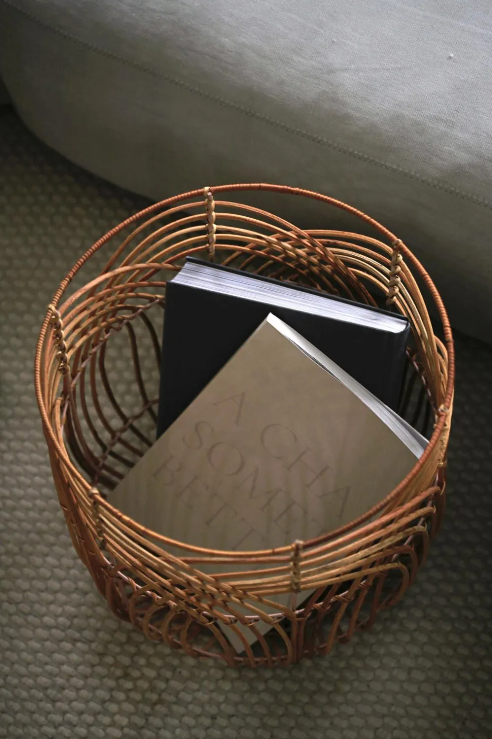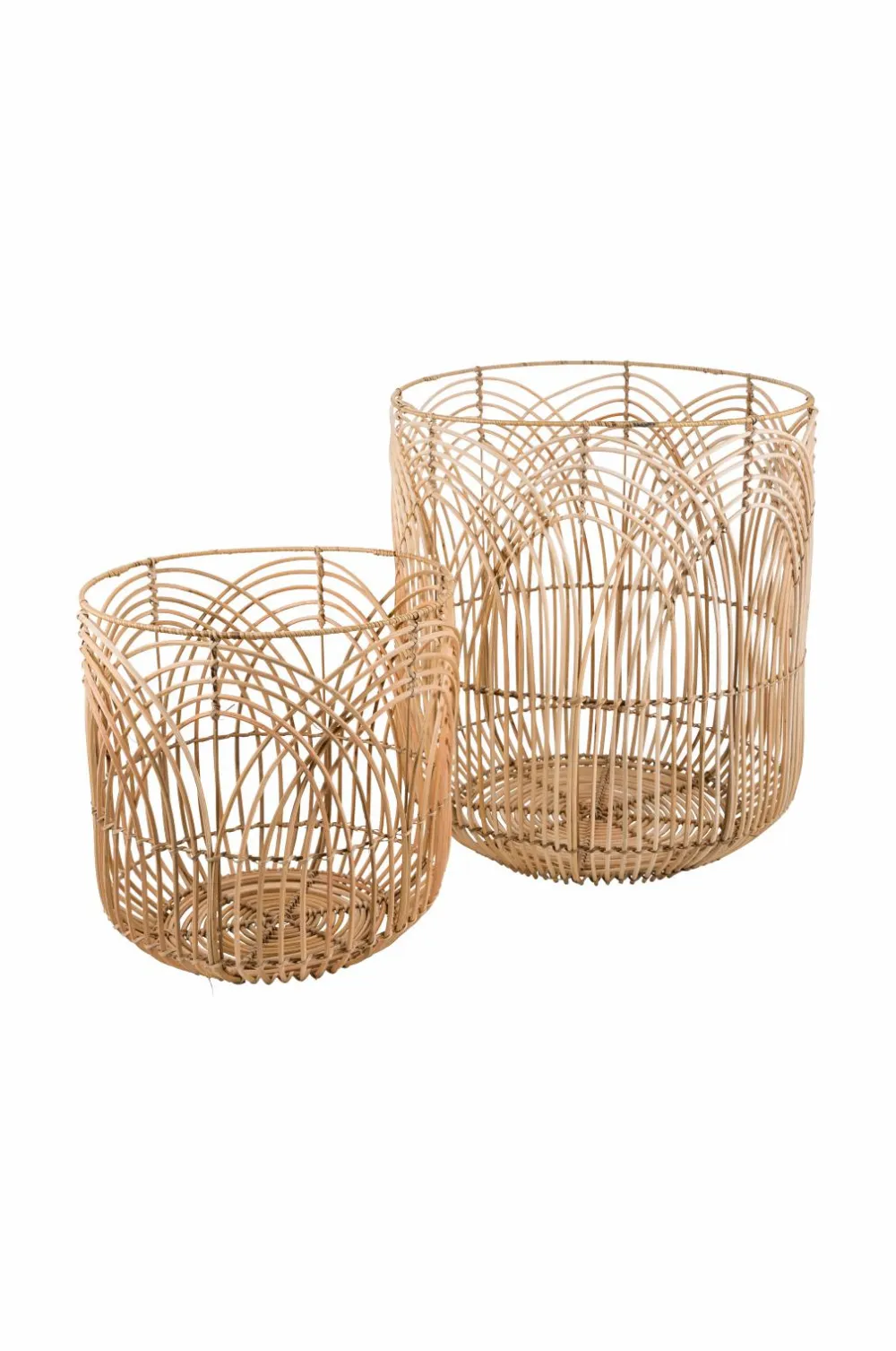 Kurve i rattan, 2 dele, højde 50 cm og 35 cm. Tørres med tør klud. Hvert produkt er unikt og håndlavet. Maks. kapacitet, stor kurv 12 kg, lille kurv 8 kg.