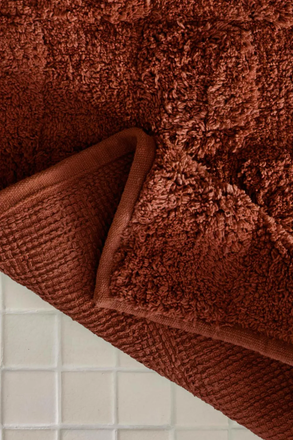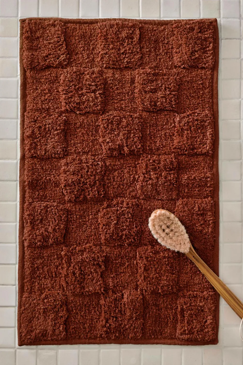 • Blødt badeværelsestæppe med tuftede firkanter i forskellige højder