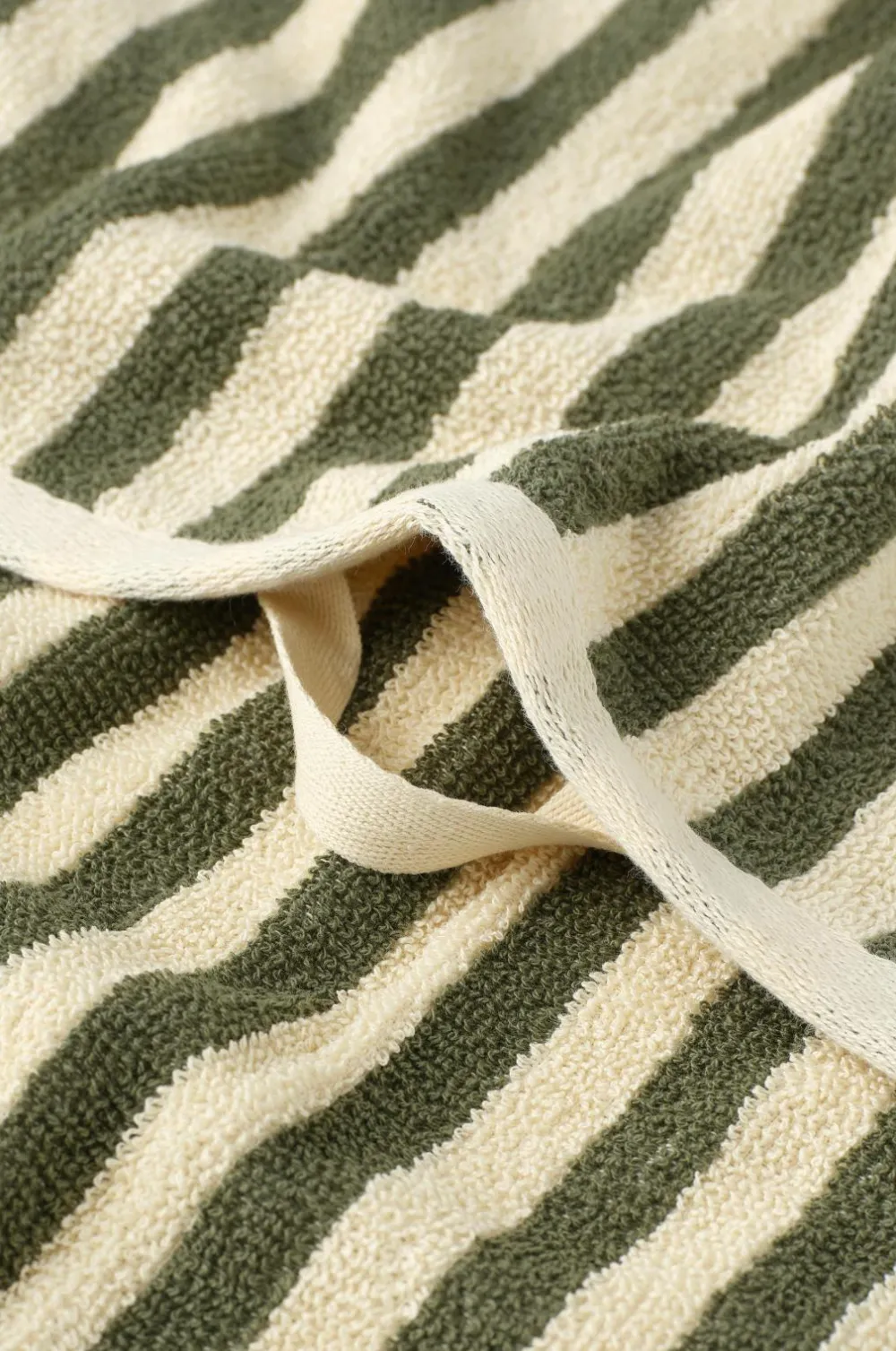 • Badehåndklæde i blødt, komfortabelt bomuldsfrotté med garnfarvede striber