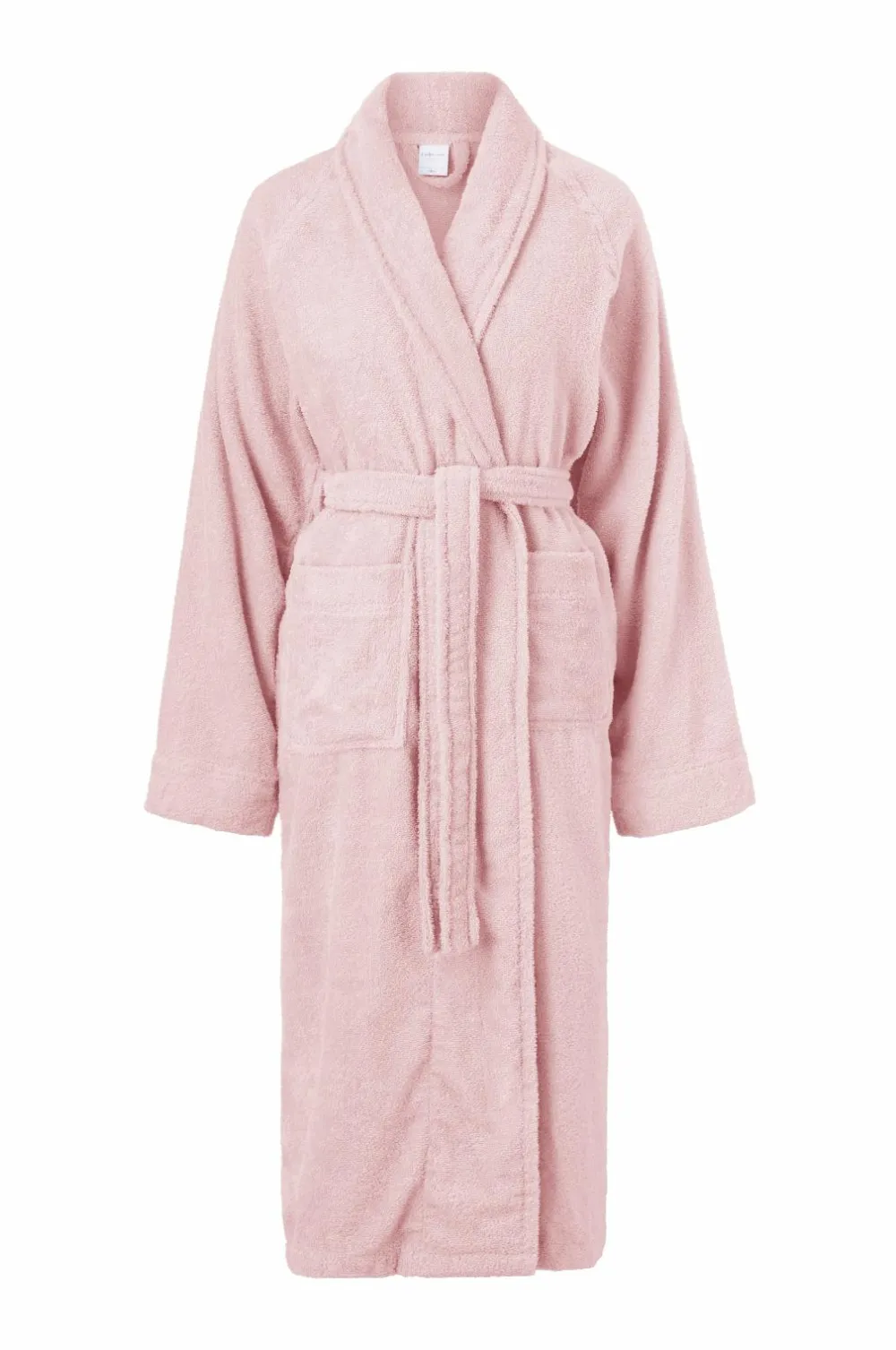 Badekåbe af 100% bomuldsfrotté med krave, to lommer og bindebælte. Længde 120 cm i str. 38/40.