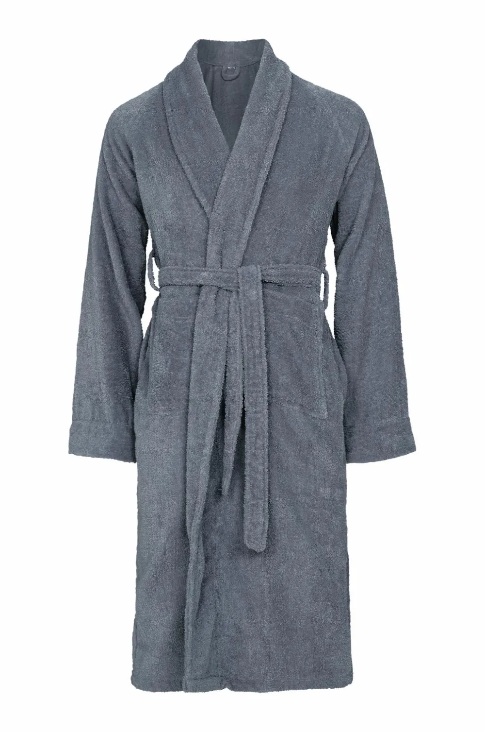 Badekåbe af 100% bomuldsfrotté med krave, to lommer og bindebælte. Længde 120 cm i str. 38/40.