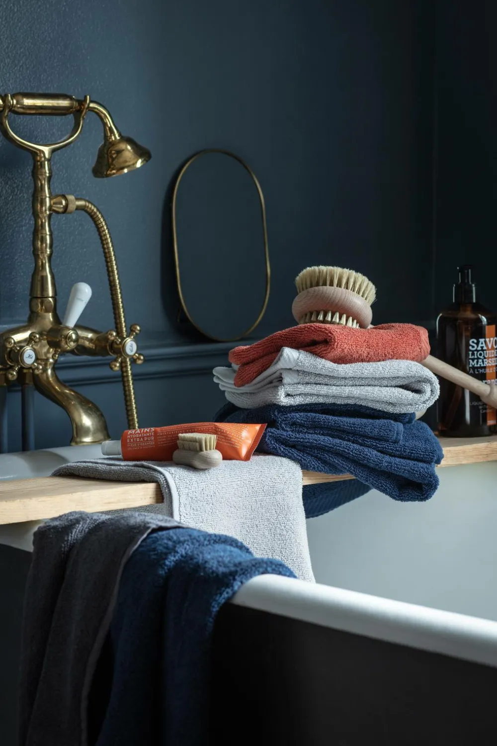 Badelagen i blød, skøn bomuldsfrotté. Vægt 500 g/m2. Str. 90×150 cm.