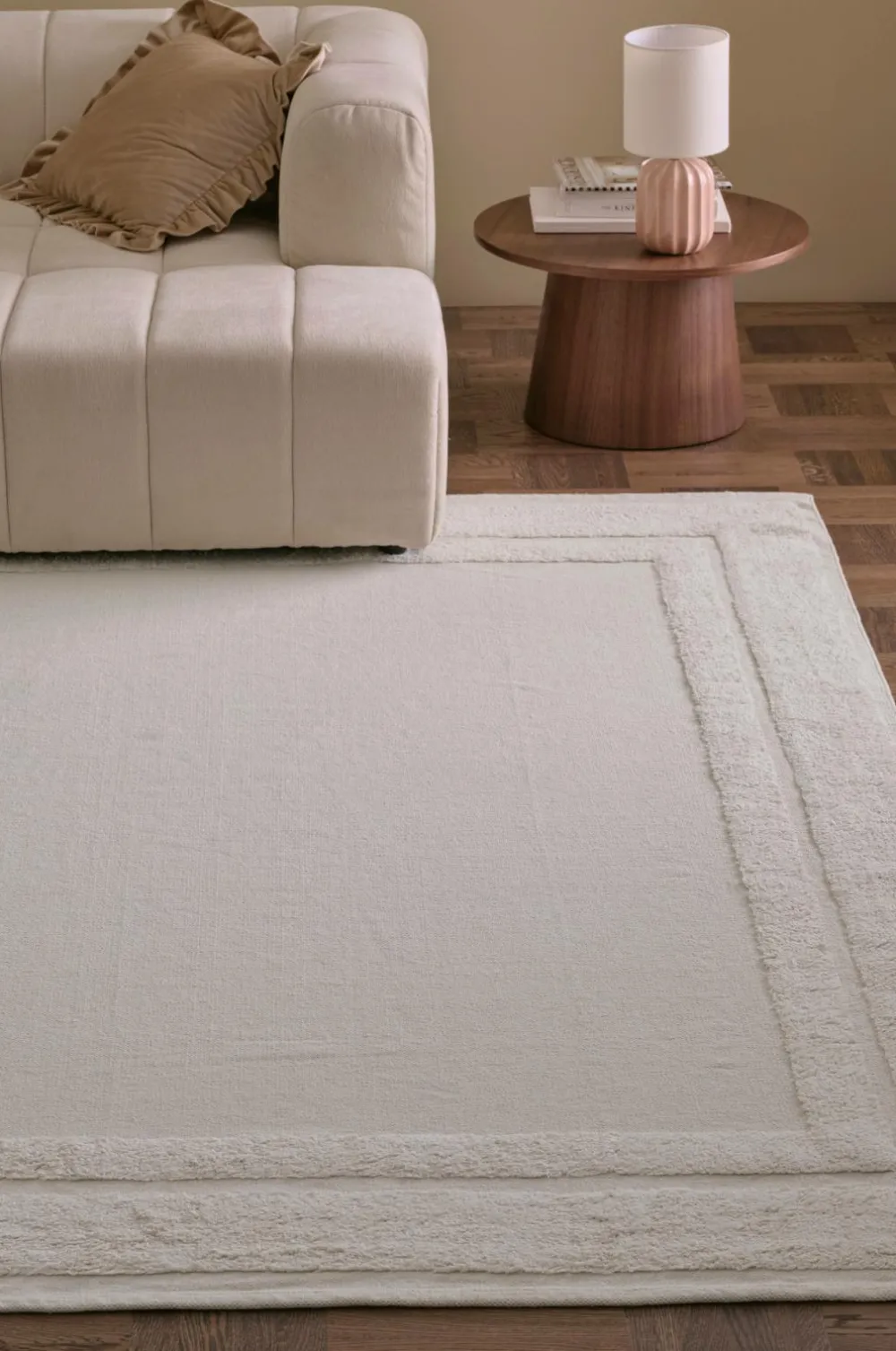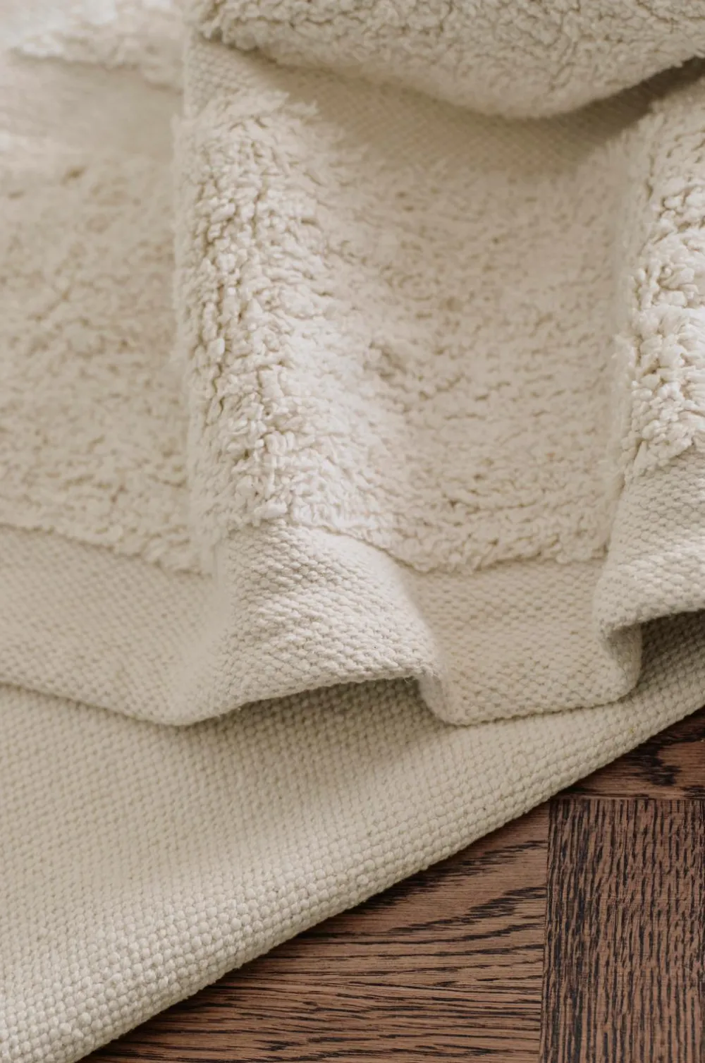 • Håndvævet bomuldsgulvtæppe med tuftet mønster