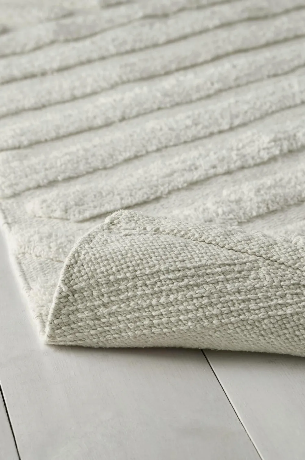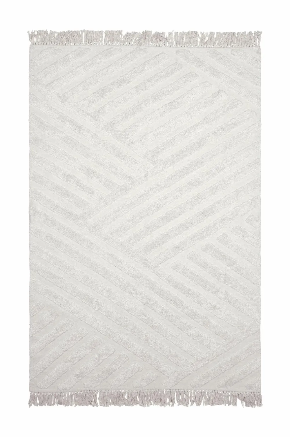 Bomuldstæppe Viterbo har en glat forside med et dekorativt, tuftet diagonalmønster. Frynser med knuder.