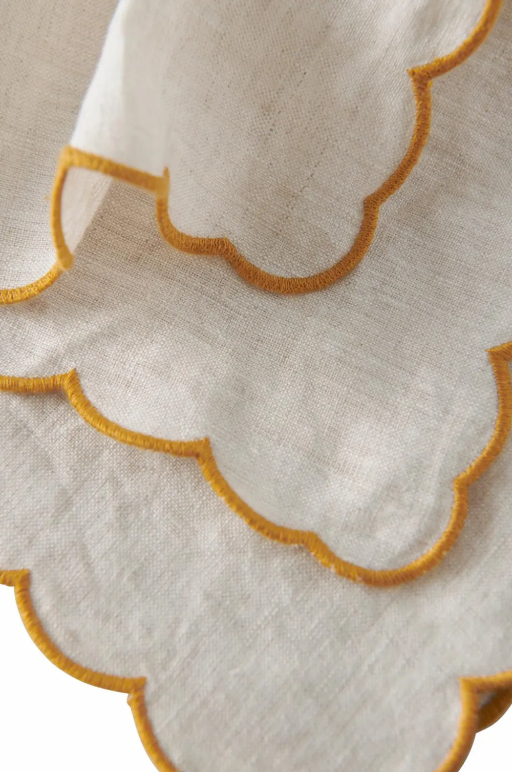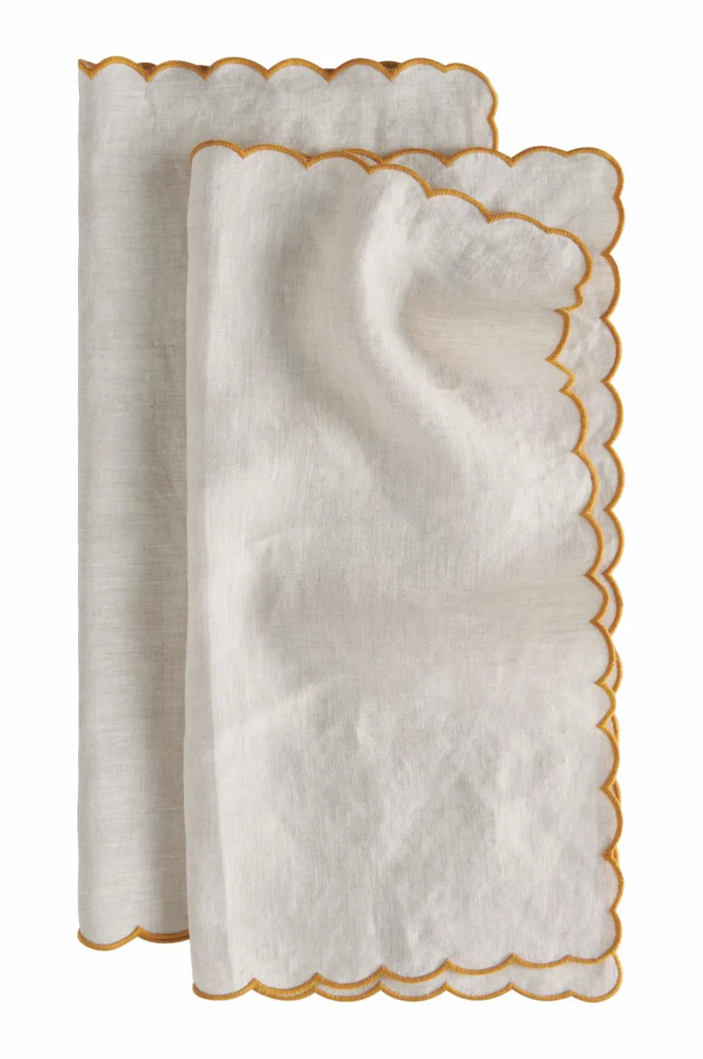 2 servietter i vasket hør med smuk struktur. Bølgekant med overlocksøm i kontrastfarve hele vejen rundt.