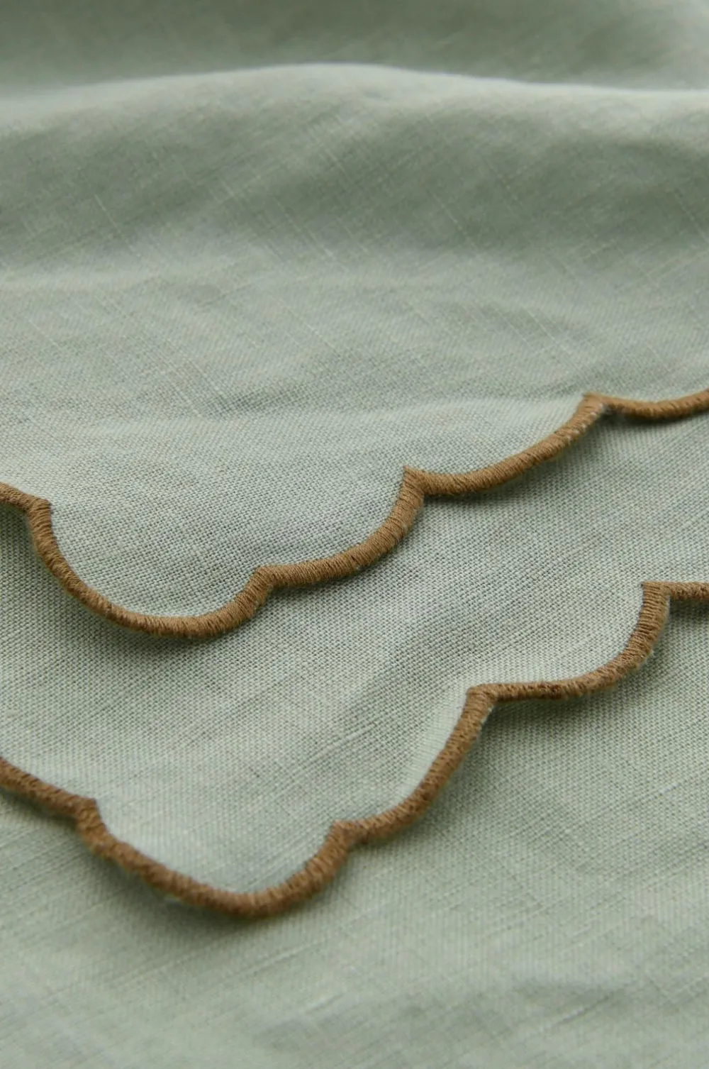 2 servietter i vasket hør med smuk struktur. Bølgekant med overlocksøm i kontrastfarve hele vejen rundt.
