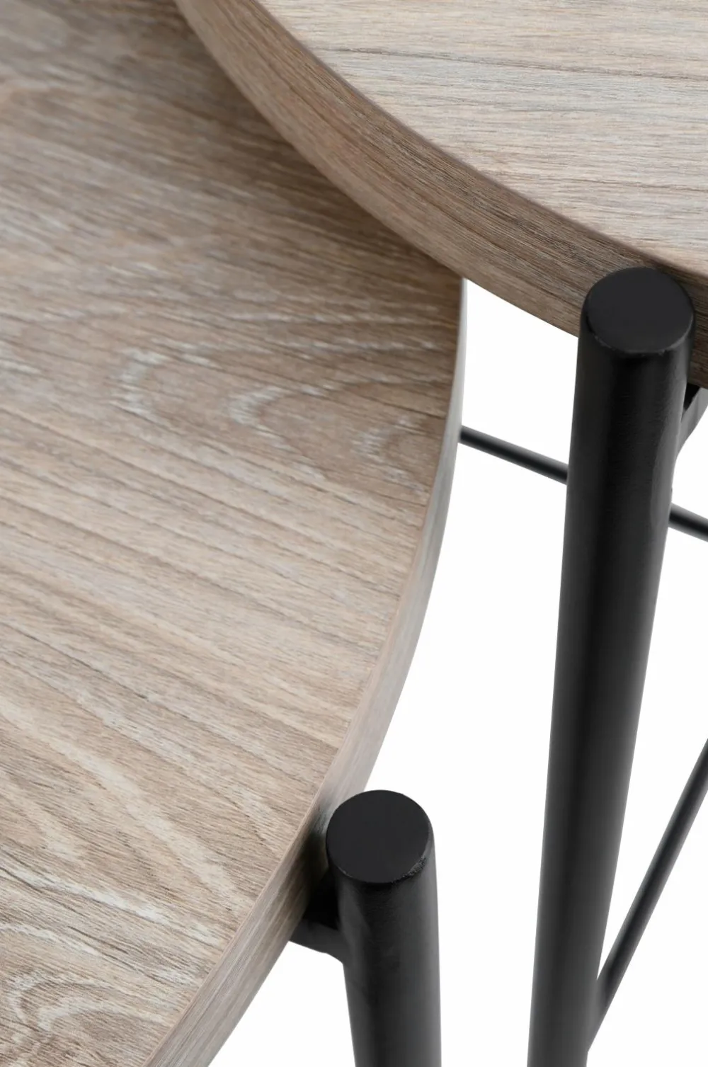 2-delt indskudsbord med ben og stel i pulverlakeret metal. Bordplade med folieret MDF.