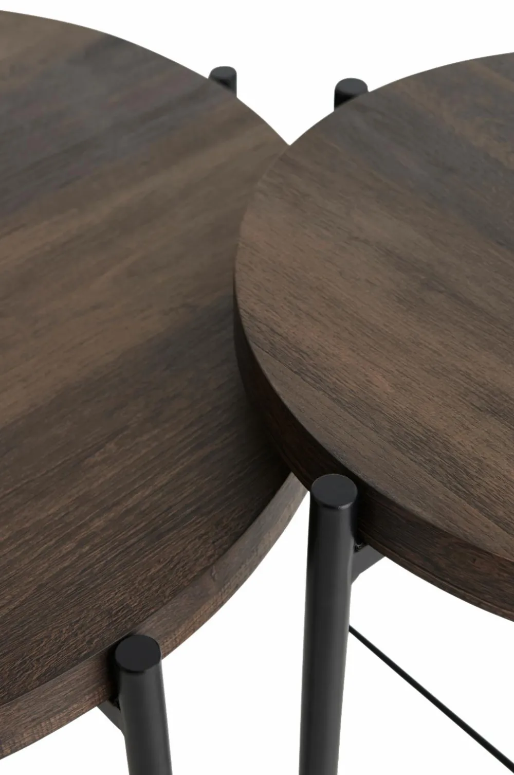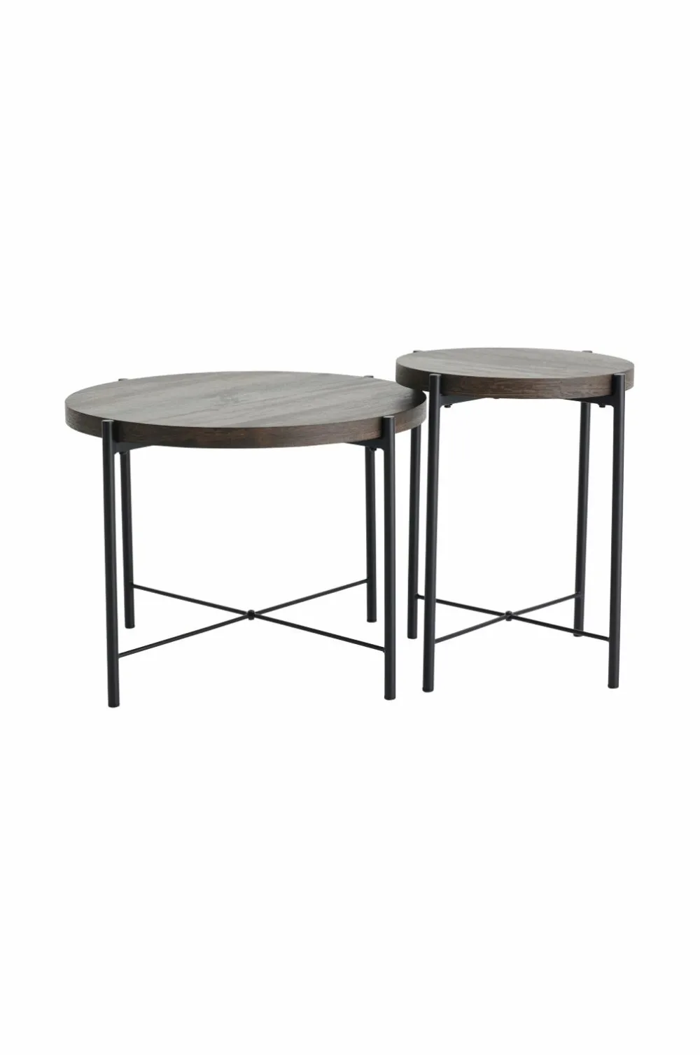 2-delt indskudsbord med ben og stel i pulverlakeret metal. Bordplade med folieret MDF.
