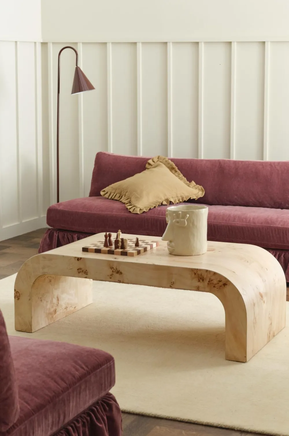 • Rektangulært sofabord i fineret krydsfiner og mangotræ