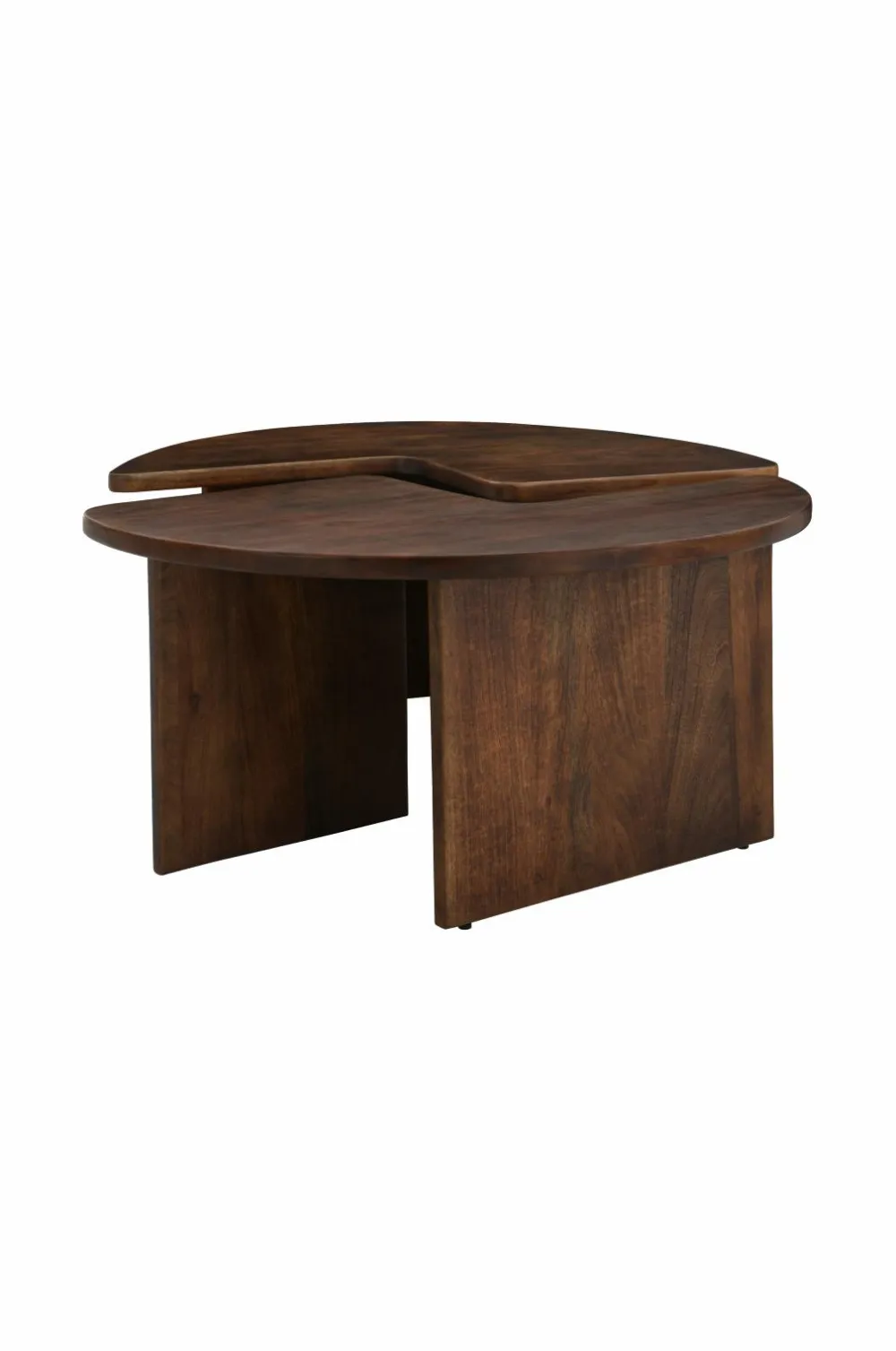 2-delt sofabord i mangotræ og metal. Bordet kan anvendes separat som f.eks. to matchende sengeborde eller kombineres til et rundt sofabord. Maks. vægt: 50 kg. Leveres monteret.