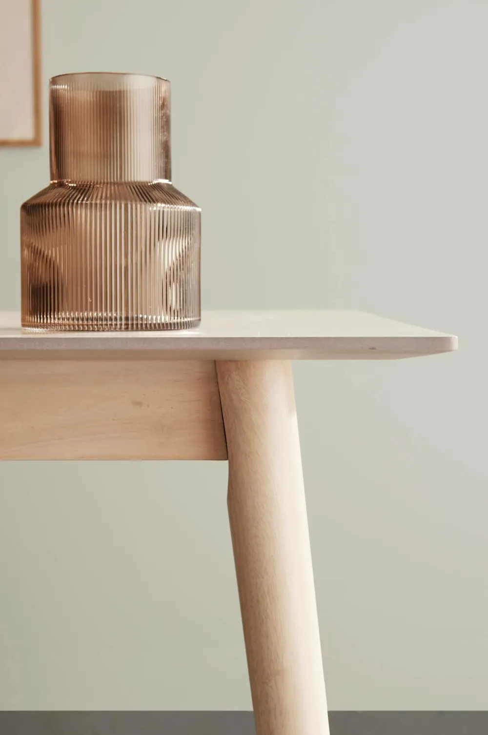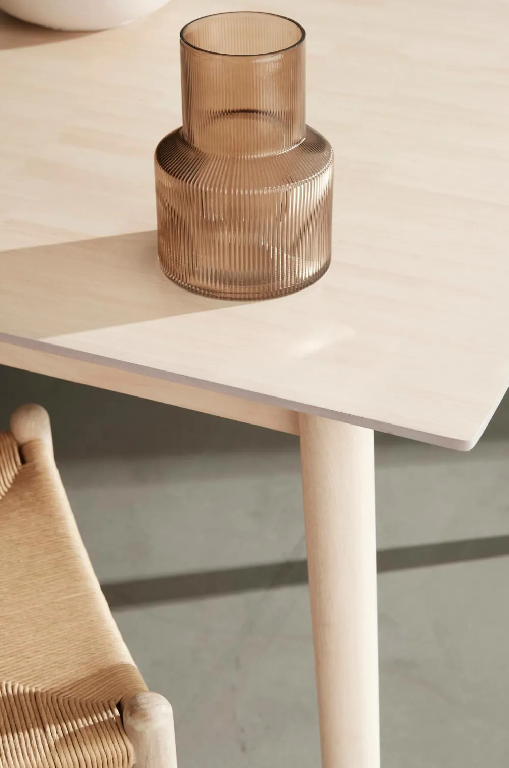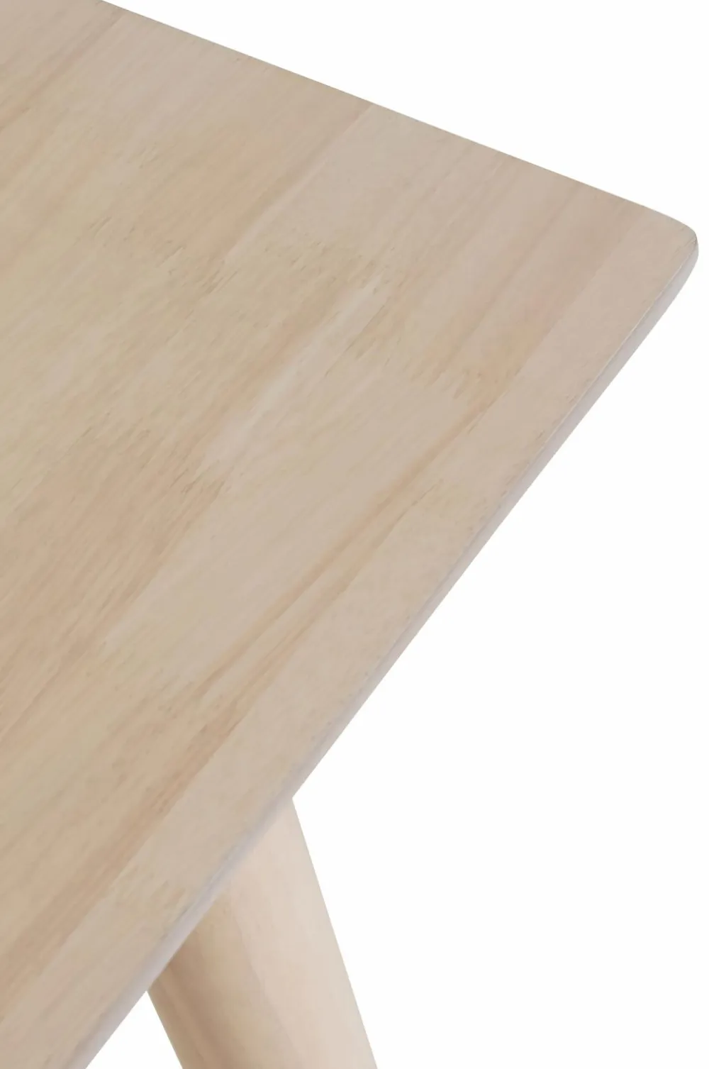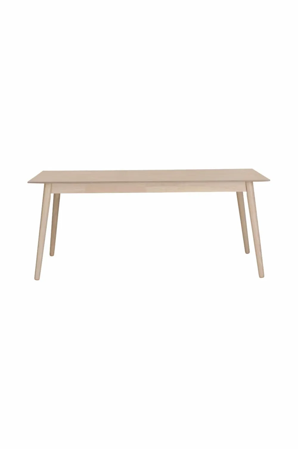 Spisebord med plade i askefinéret MDF og ben og stel i massivt gummitræ. Størrelse 90×180 cm. Højde 74 cm. Mål mellem bordben langside 147 cm (top), 164 cm (bund). Nem montering.