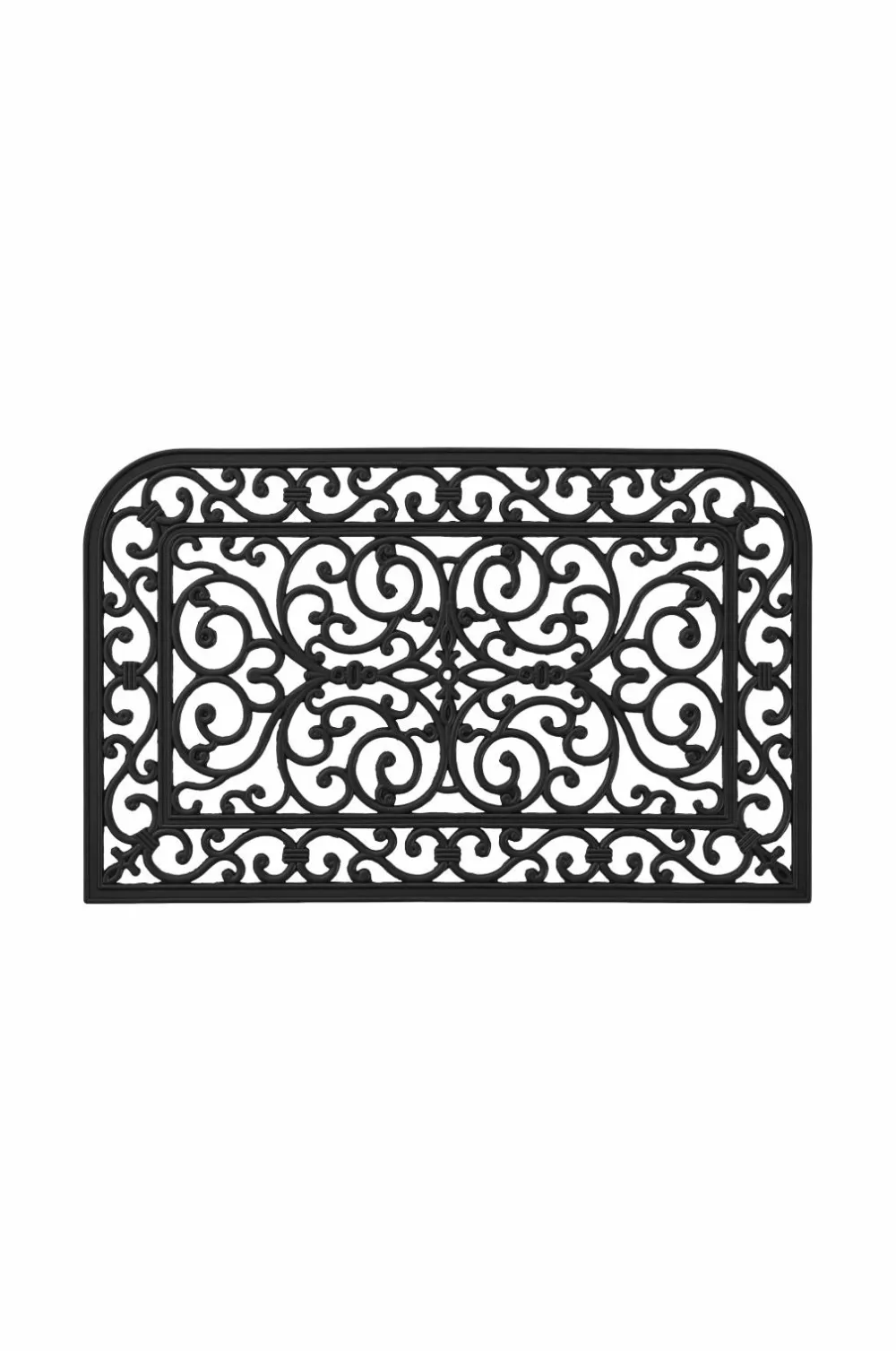 • Slidstærk dørmåtte i naturgummi med snørklet mønster