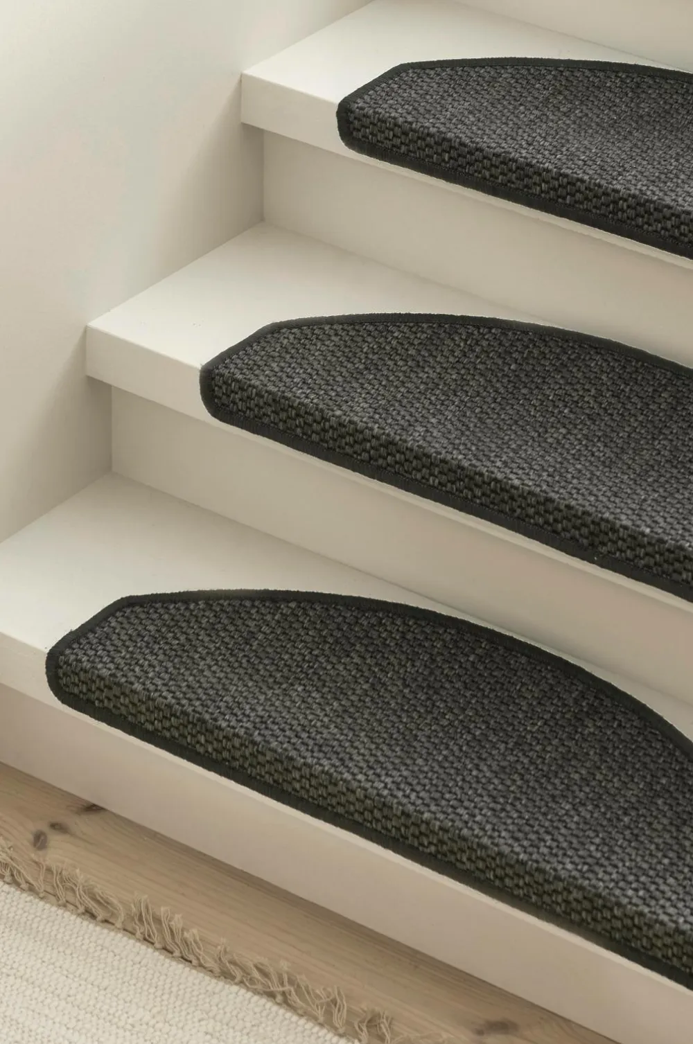 Trappeskåner i 2-pak. Vævet i sisallignende struktur, kanter med kantsyning. Bagside af hårdplastprofil og dobbelklæbende tape. Str. 28×65 cm.