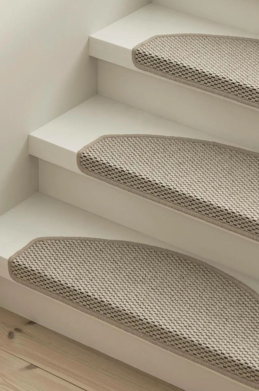Trappeskåner i 2-pak. Vævet i sisallignende struktur, kanter med kantsyning. Bagside af hårdplastprofil og dobbelklæbende tape. Str. 28×65 cm.