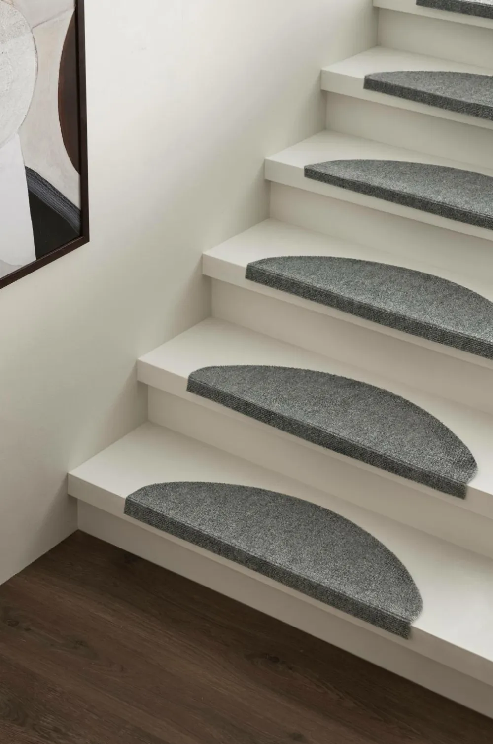 Ensfarvet med selvklæbende bagside. Af polypropylen. Støvsugning/skumvask. Str. 64×21 cm + 3 cm kant til at folde ned.