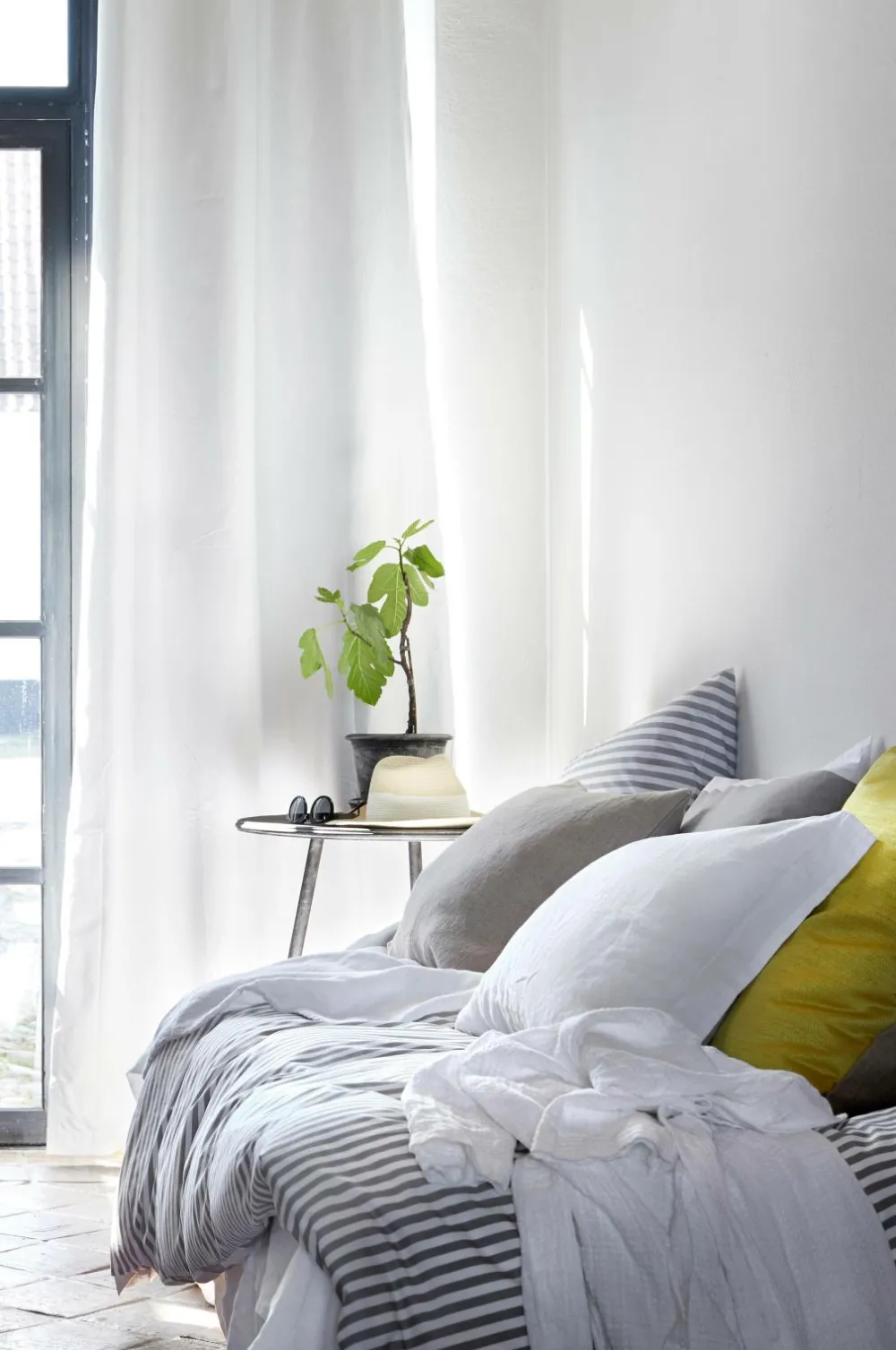 Hør er et klassisk, smukt materiale, som både er dejligt at sove i og pænt at se på. Hør har også de gode egenskaber at det både absorberer fugt og transporterer kropsvarme væk. Det gør at det altid føles køligt og blødt.