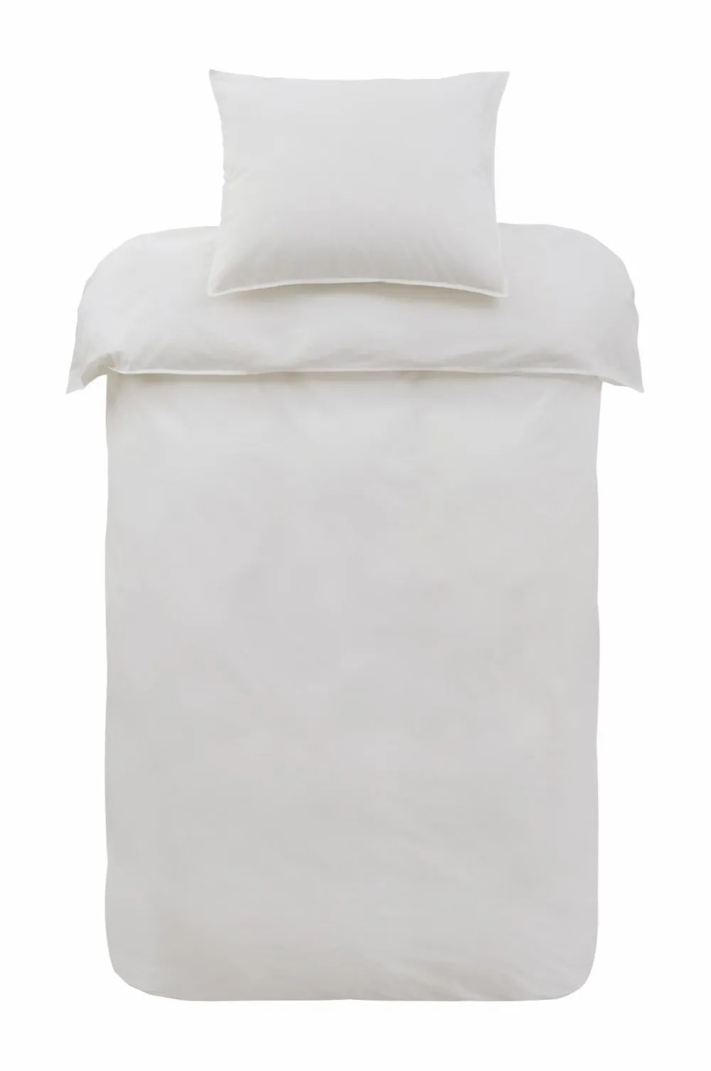 Sengesæt i vintagevasket økologisk bomuld. Trådtæthed 144 TC. Dobbelte jeanssømme hele vejen rundt. Trykknapper i kanten forneden på dynebetrækket. Ingen huller i siden til brug ved opredning. Leveres i stofpose i samme kvalitet med løbegang. Dynebetræk 150×210 cm og pudebetræk 50×60 cm.
