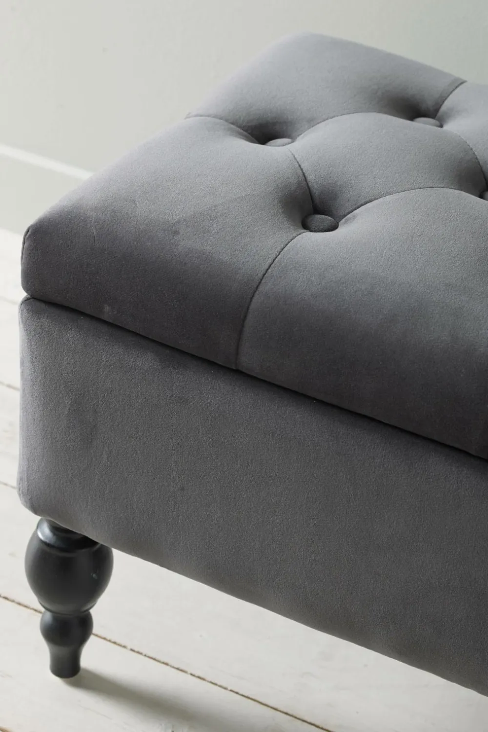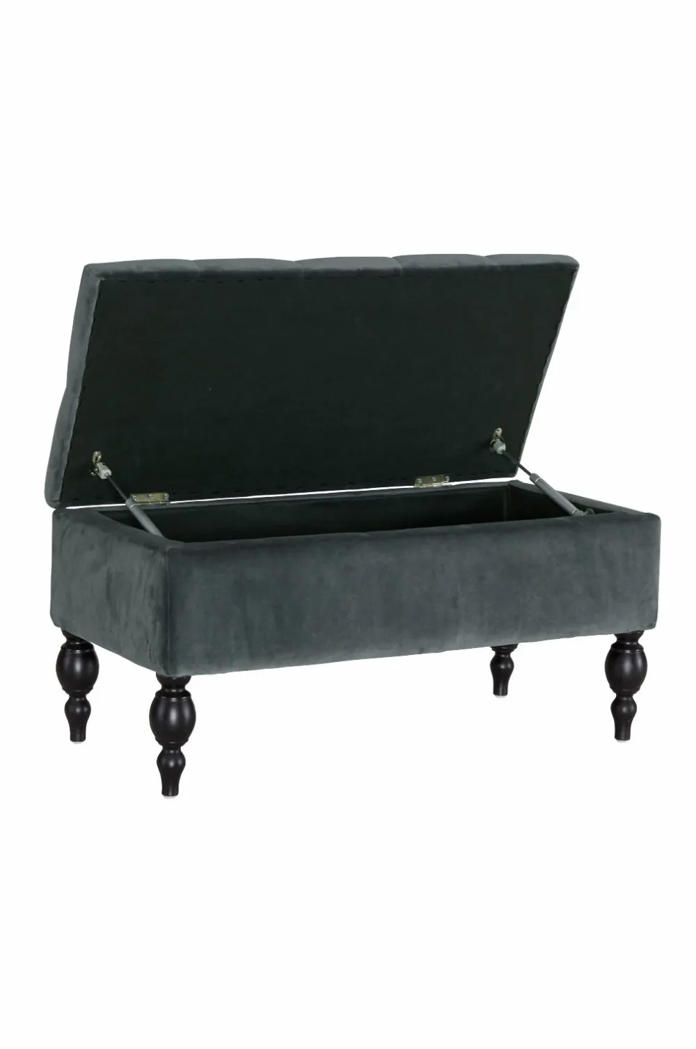 Opbevaringsbænk med betræk i polyestervelour. Stel af fyrretræ og plywood. Ben i gummitræ. Polstring af polyether. Opbevaringsrum i bænken, klap, der kan vippes op med hængsel og gasfjedre, der gør, at klappen åbnes og lukkes blidt og dæmpet uden klemmerisiko. Bredde 80 cm, dybde 40 cm, højde 40 cm. Mål indvendigt: 30×70 cm. Frihøjde 16 cm. Maks. belastning 130 kg. Lev. samlet. Produktet indeholder FSC-certificeret træ, som er fældet i et ansvarsfuldt skovbrug, der tager hensyn til mennesker og miljø.