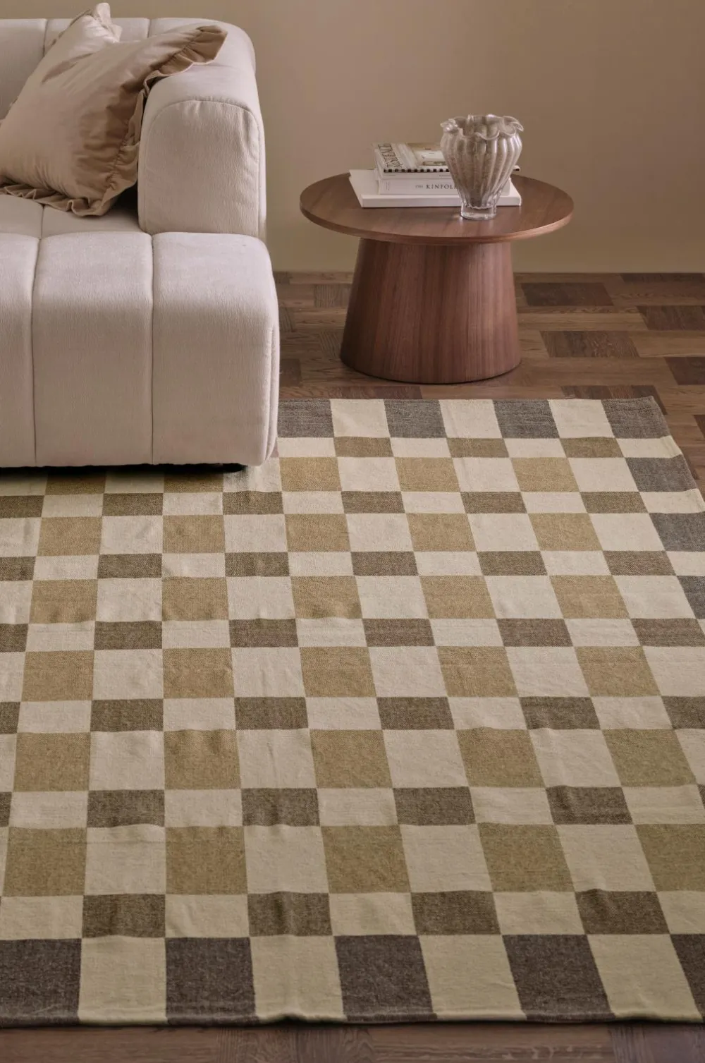 • Glatvævet bomuldsgulvtæppe i vasket kvalitet med printet mønster
