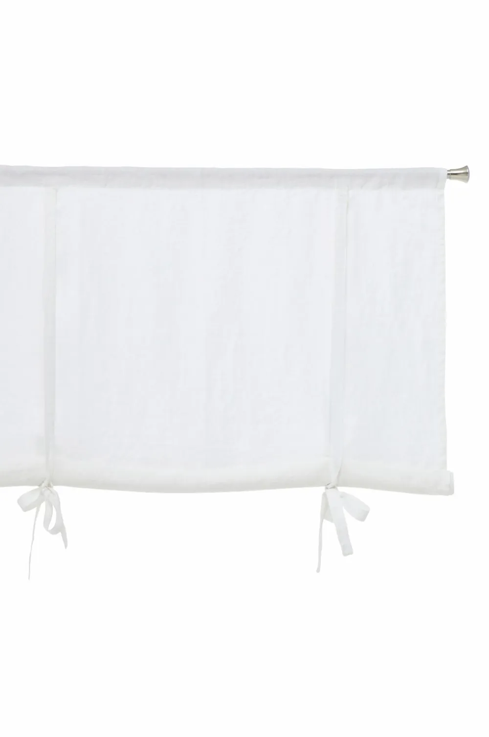 Roll up-gardin i vasket hørkvalitet med bindebånd. Af fransk hør. For at få en lige kant forneden rulles gardinet rundt om en træpind (træpinde medfølger ikke). For at bevare teksturen tørretumbles gardinet ved lav temperatur og hænges op, mens det er let fugtigt. Længde 100 cm. Findes i fire bredder: 80, 100, 120 og 140 cm.