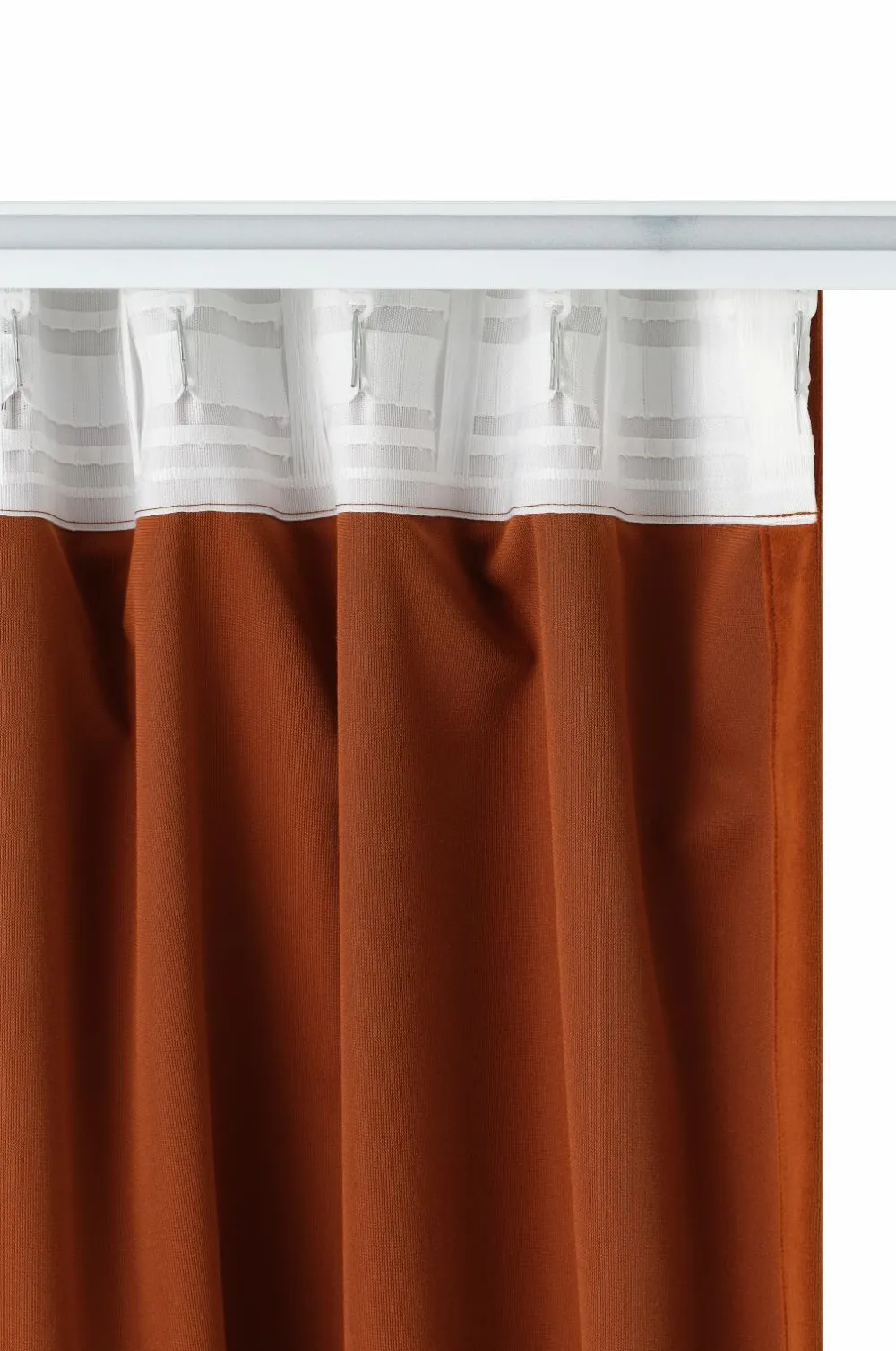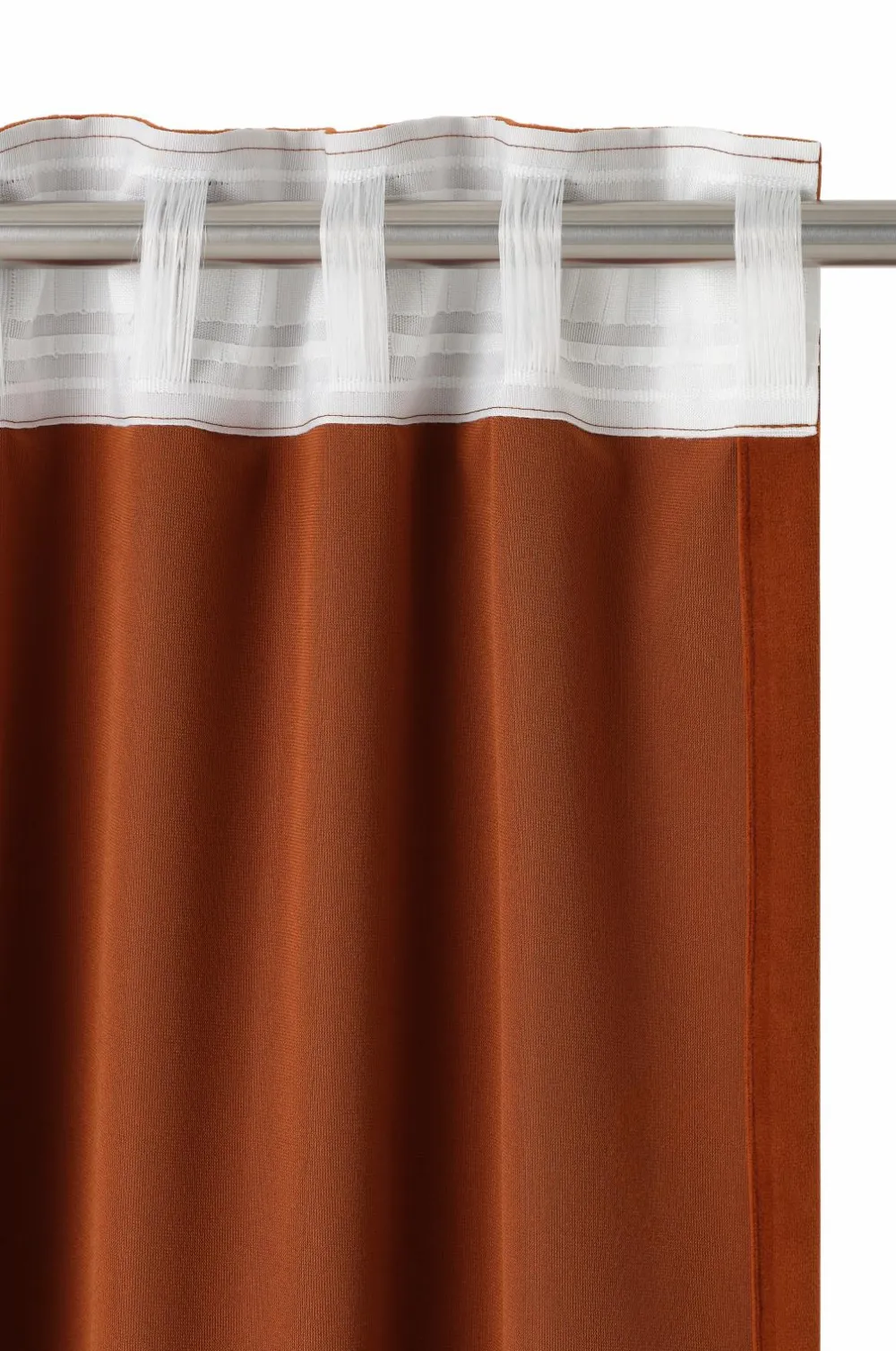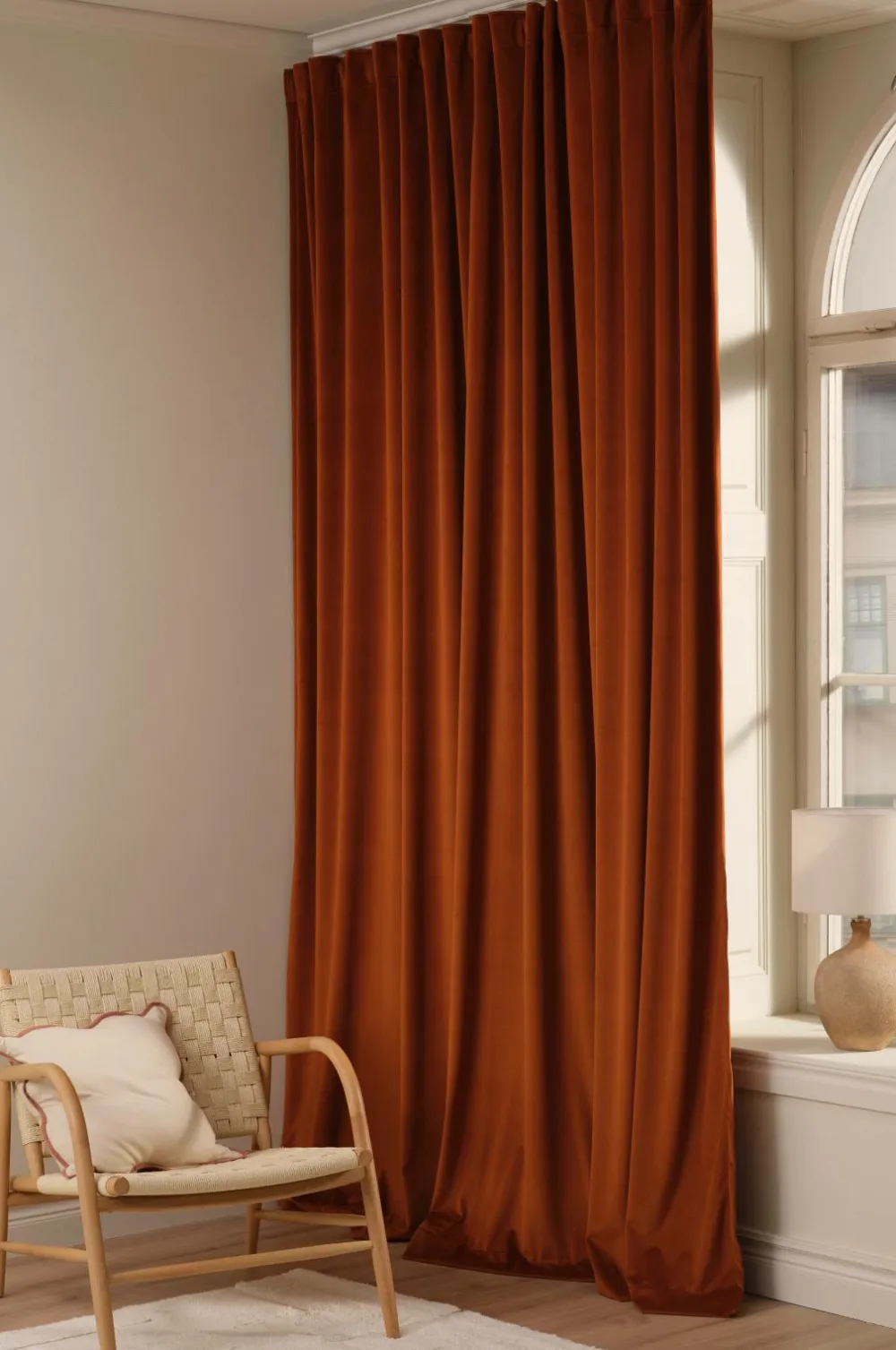 DEMI er et smukt fløjlsgardin med en generøs vægt, der giver stoffet et flot fald. Fløjlsstoffet skinner i lyset, som kun fløjl kan. De magiske fløjlsgardiner i rige farver giver rummet en varm og hyggelig følelse. DEMI-gardinet er fremstillet af certificeret genbrugspolyester. Gardinerne har et multifunktionelt bånd i toppen og kan hænges op med fingerkroge, en kanal og en skjult bøjle.