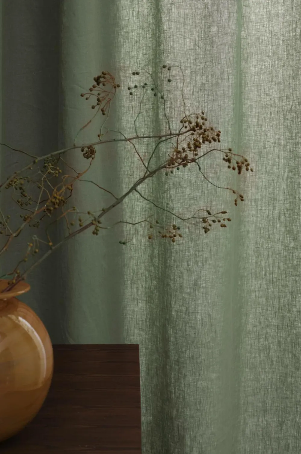 Gardinens længde kan variere en smule ved levering, da naturmaterialer som hør påvirkes mere af temperaturen end syntetiske materialer. En variation på 1-2 cm fra de angivne mål er helt naturlig.