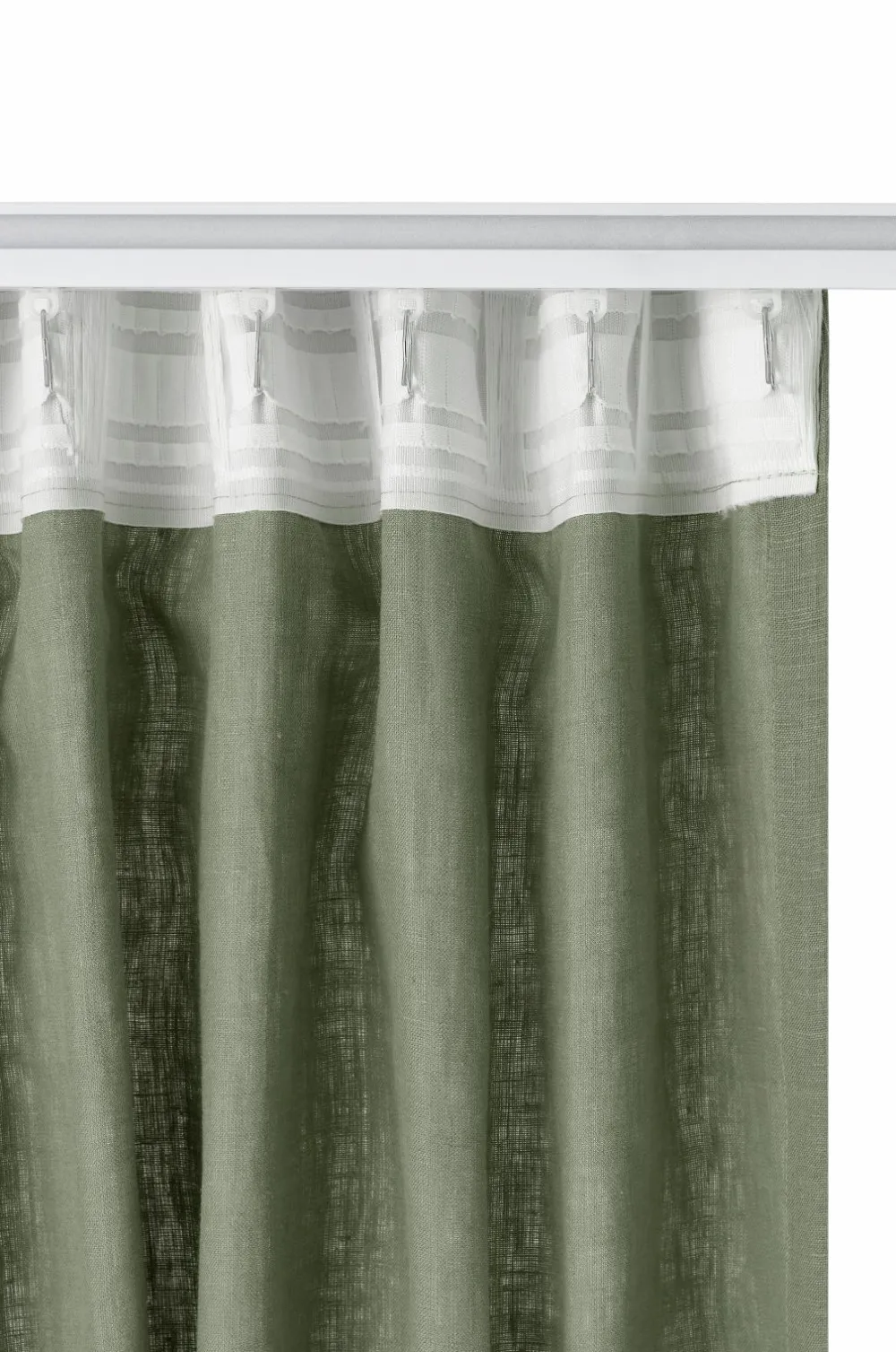 LEAH er et klassisk og tidløst gardin lavet af ægte hør. Det giver en fantastisk følelse i stoffet med den typiske hørstruktur, og du får et levende stof, der er lige så smukt, når det er strakt, som når det er let krøllet. Stoffet falder pænt på en naturlig måde, og oplevelsen af 100 % hør er unik. Det klassiske farveskema indeholder naturlige farver, der skaber en afbalanceret og rolig atmosfære. LEAH-gardinet er fremstillet af europæisk hørcertificeret hør. Længderne har påsyede multifunktionelle bånd i toppen, og de kan hænges op ved hjælp af fingerkroge, en kanal og en skjult bøjle.