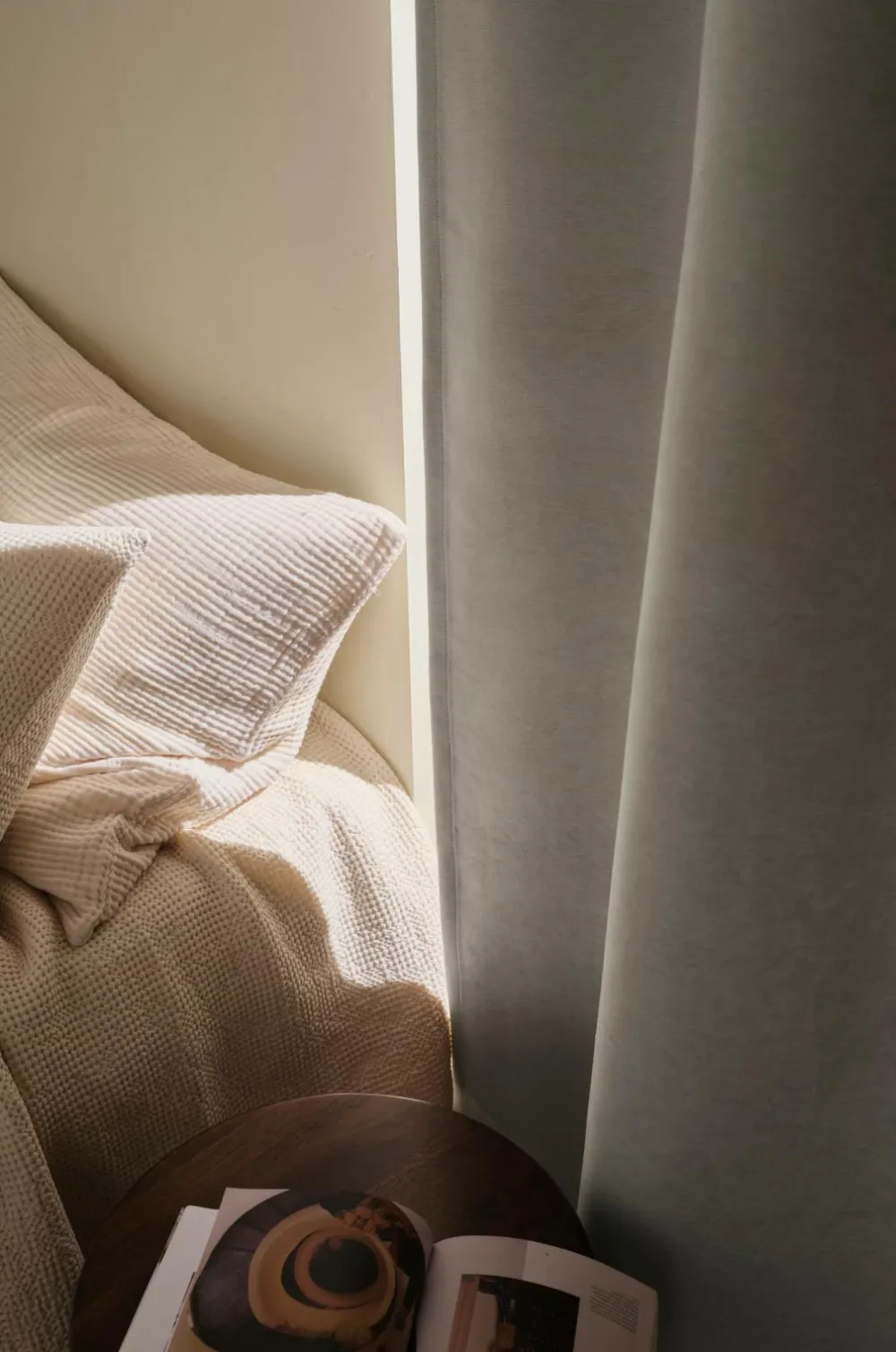 Gardinerne er syet og kantet i hånden i vores atelier i Borås. For at få et flot fald og en eksklusiv følelse i gardinet syr vi små lommer til vægte ind i bunden, og sømmen er også ekstra bred. Da hvert gardin er syet unikt til dig, kan disse gardiner have en længere leveringstid.