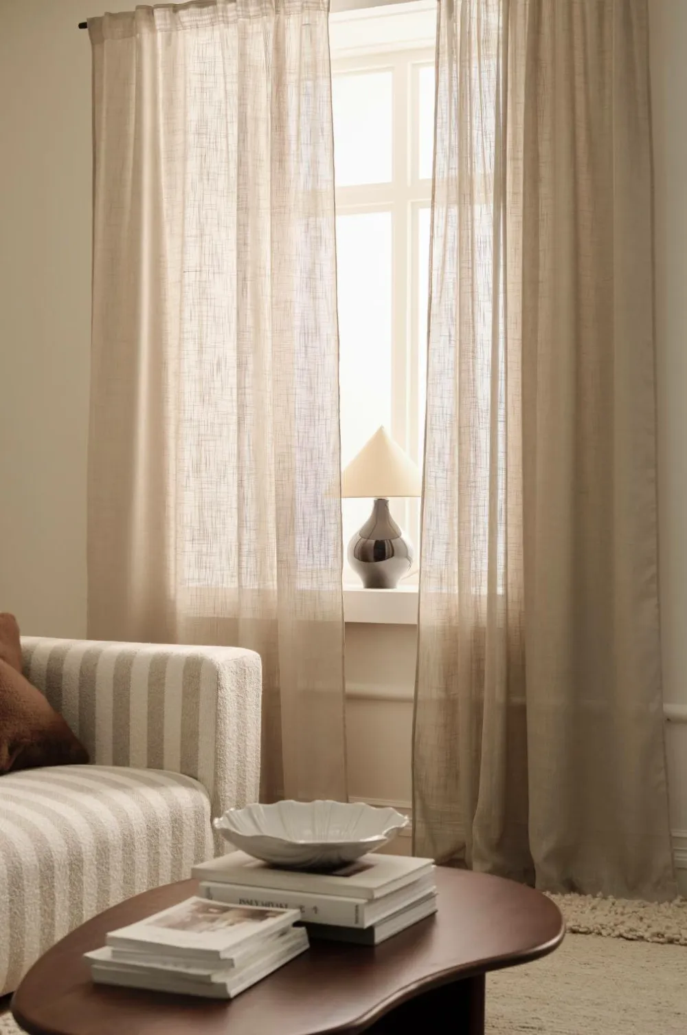 • To Multibåndsgardiner i åbent stof kvalitet med linnedtekstur