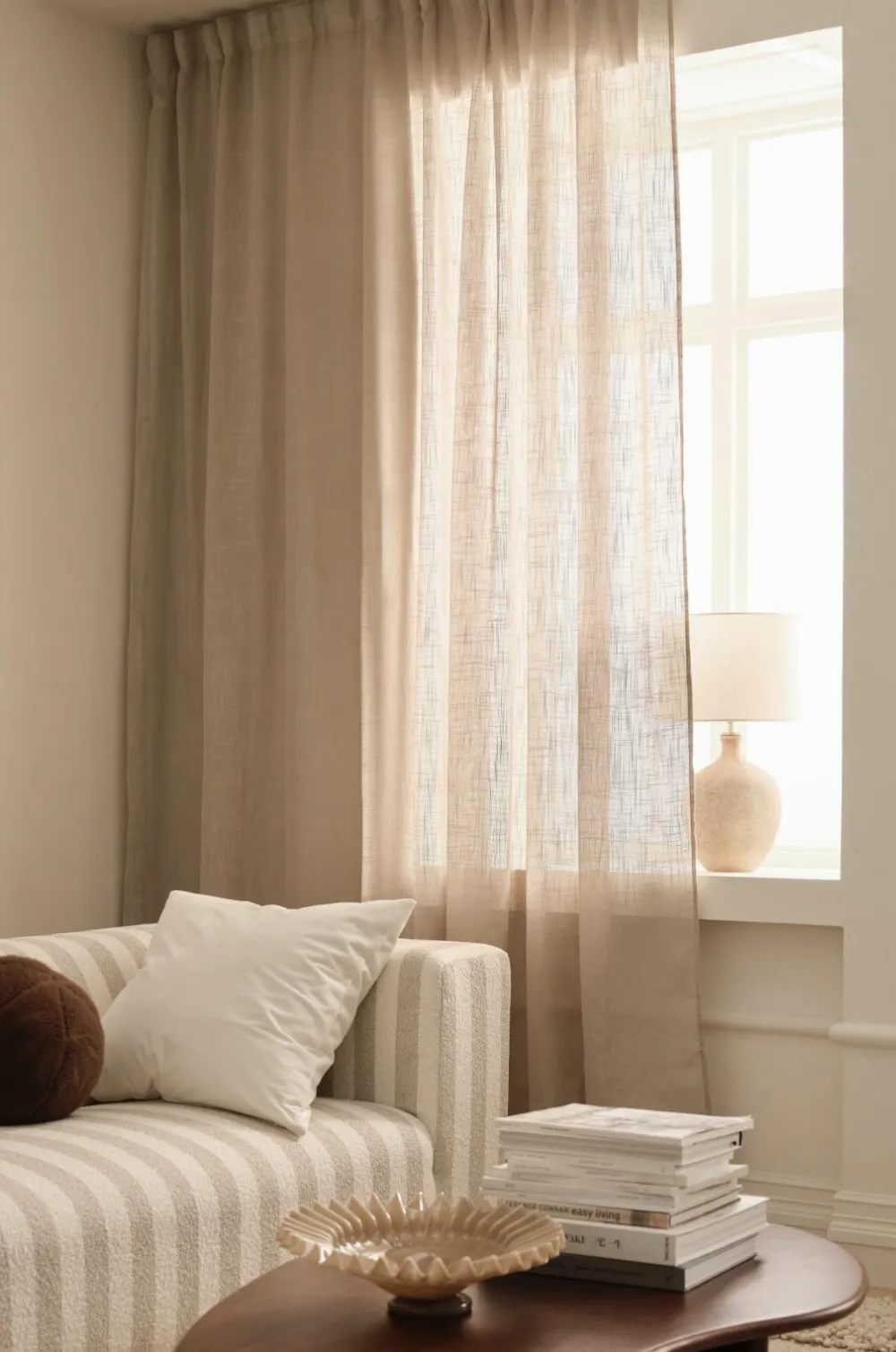 • En Multibåndsgardin i åbent stof kvalitet med linnedtekstur