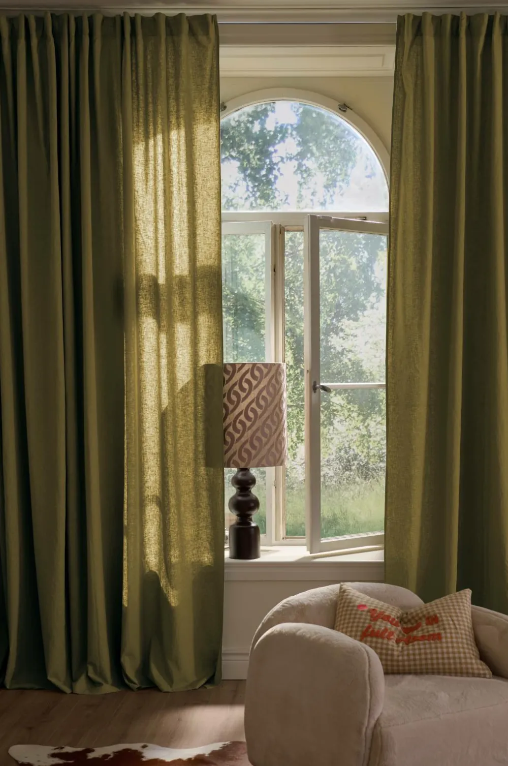 • Multibåndet gør, at du enten kan hænge gardinerne direkte på en gardinstang gennem de skjulte stropper eller anvende ringe, nålekroge eller fingerkroge. Snoren i rynkebåndet gør, at du let kan skabe ensartede, flotte læg.