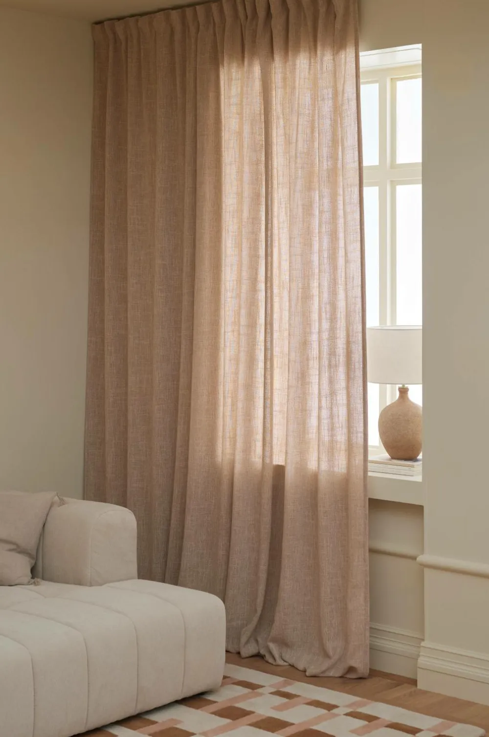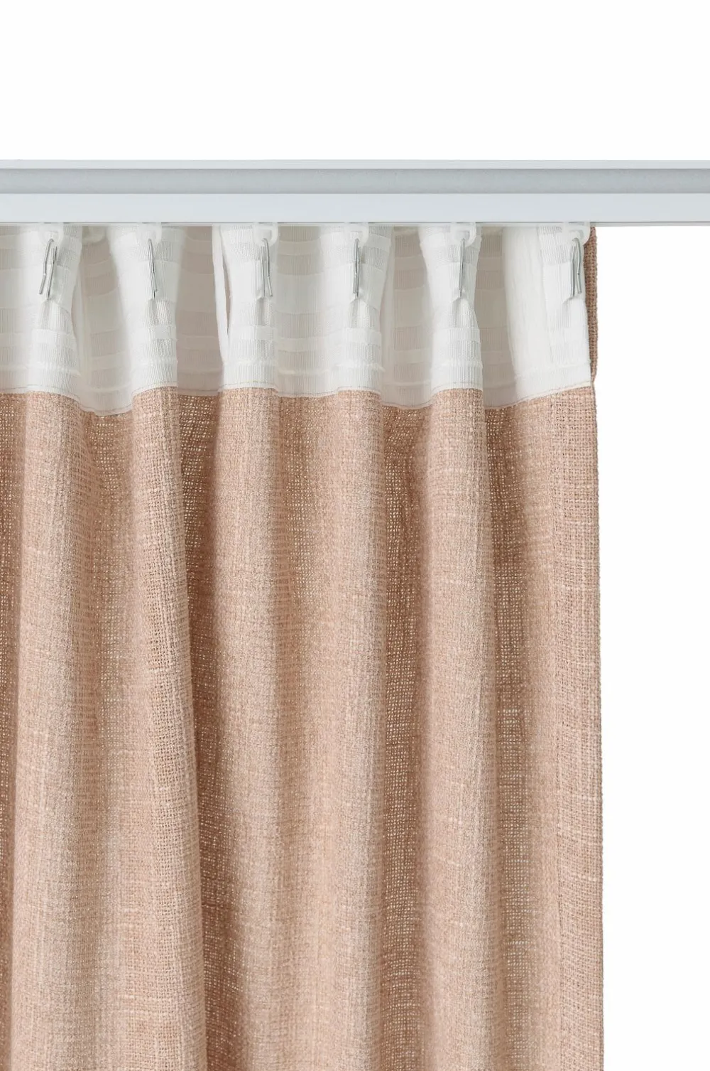 • Multibåndet giver dig mulighed for enten at hænge gardinet direkte på en gardinstang gennem de skjulte øjer eller bruge ringe, nålekroge eller fingerkroge. Snorene i plisseringsbåndet gør det nemt at lave jævne, fine plisseringer.