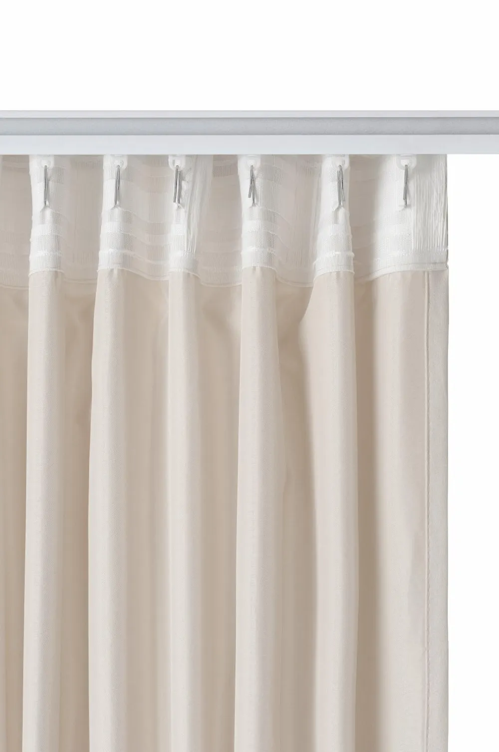 • Multibåndet gør, at du enten kan hænge gardinerne direkte på en gardinstang gennem de skjulte stropper eller anvende ringe, nålekroge eller fingerkroge. Snoren i rynkebåndet gør, at du let kan skabe ensartede, flotte læg.