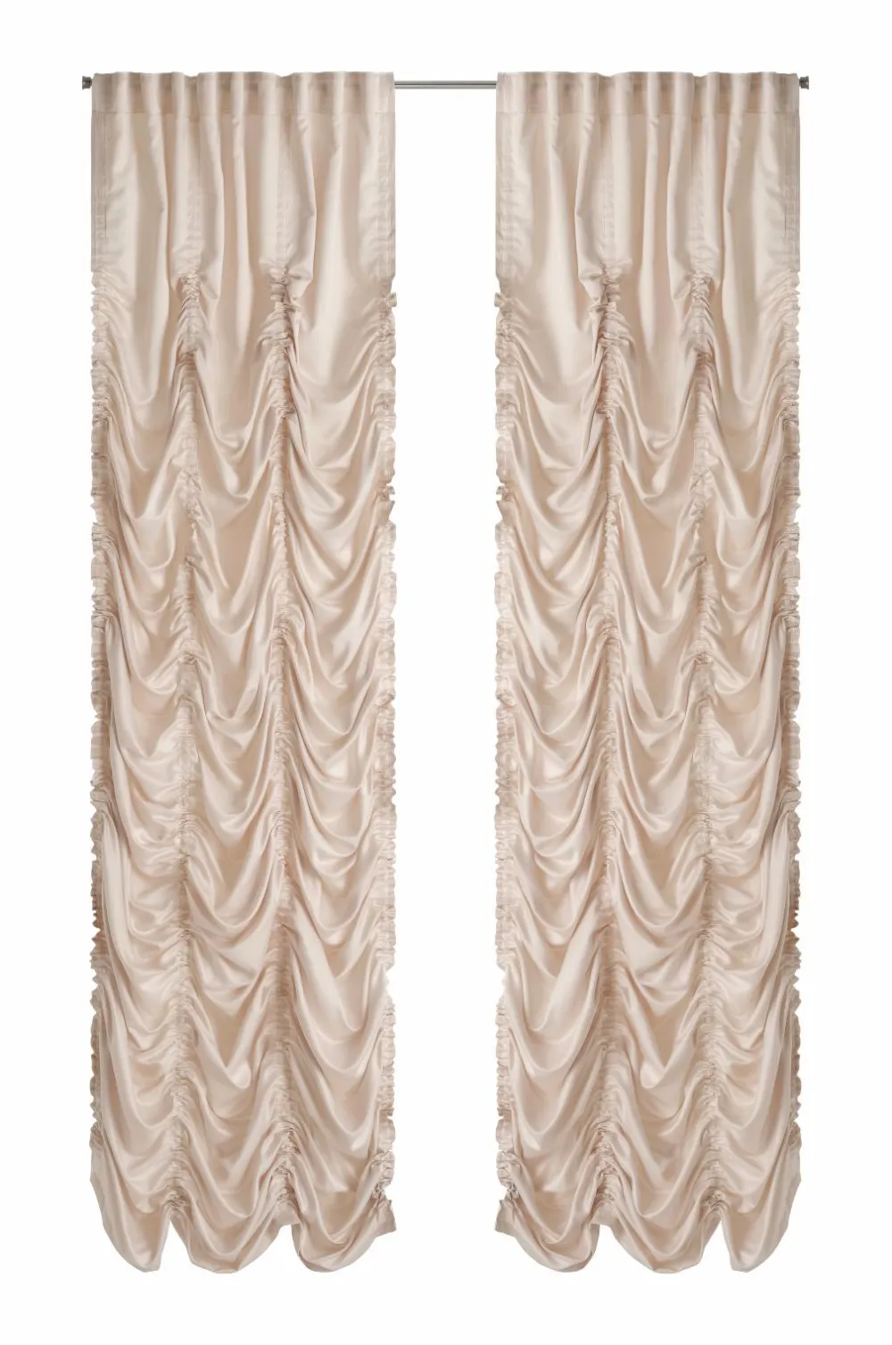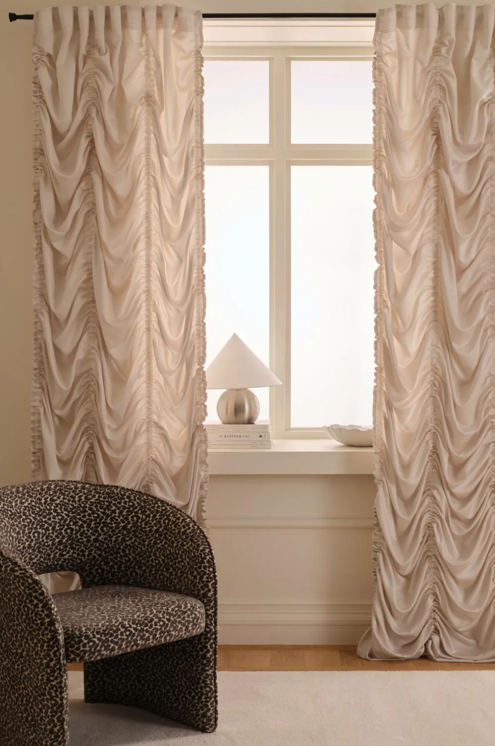 • Gardinet har indsyede lodrette snore, som gør det muligt at trække det op og skabe stilfulde, draperede effekter. Gardinet kan trækkes op til maksimalt ca. 60 cm. Snorene kan skjules i folden i bunden.