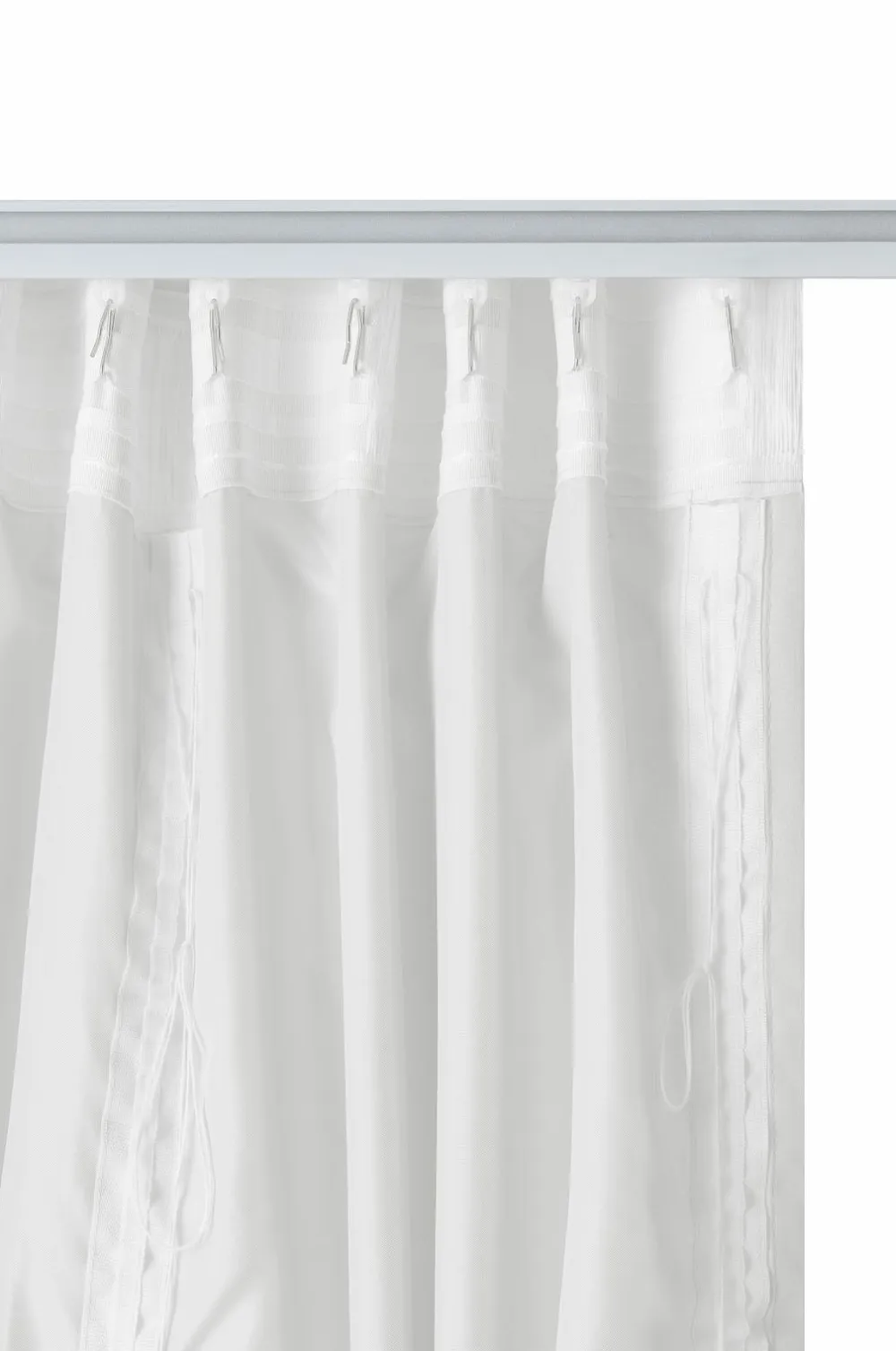 • Gardinet har indsyede lodrette snore, som gør det muligt at trække det op og skabe stilfulde, draperede effekter. Gardinet kan trækkes op til maksimalt ca. 60 cm. Snorene kan skjules i folden i bunden.