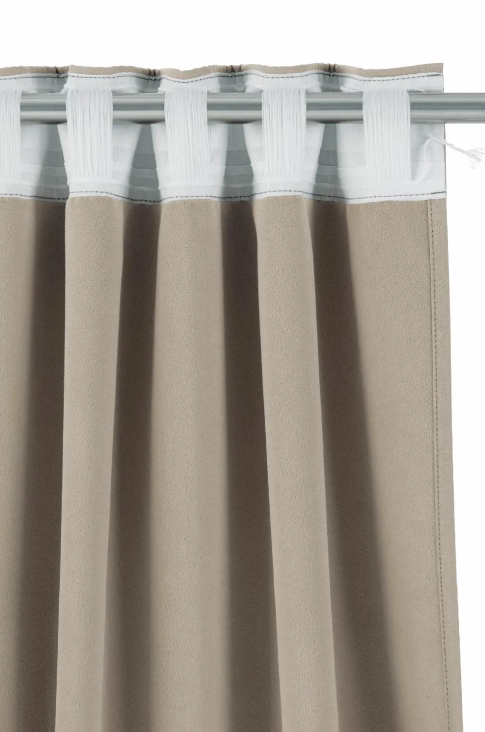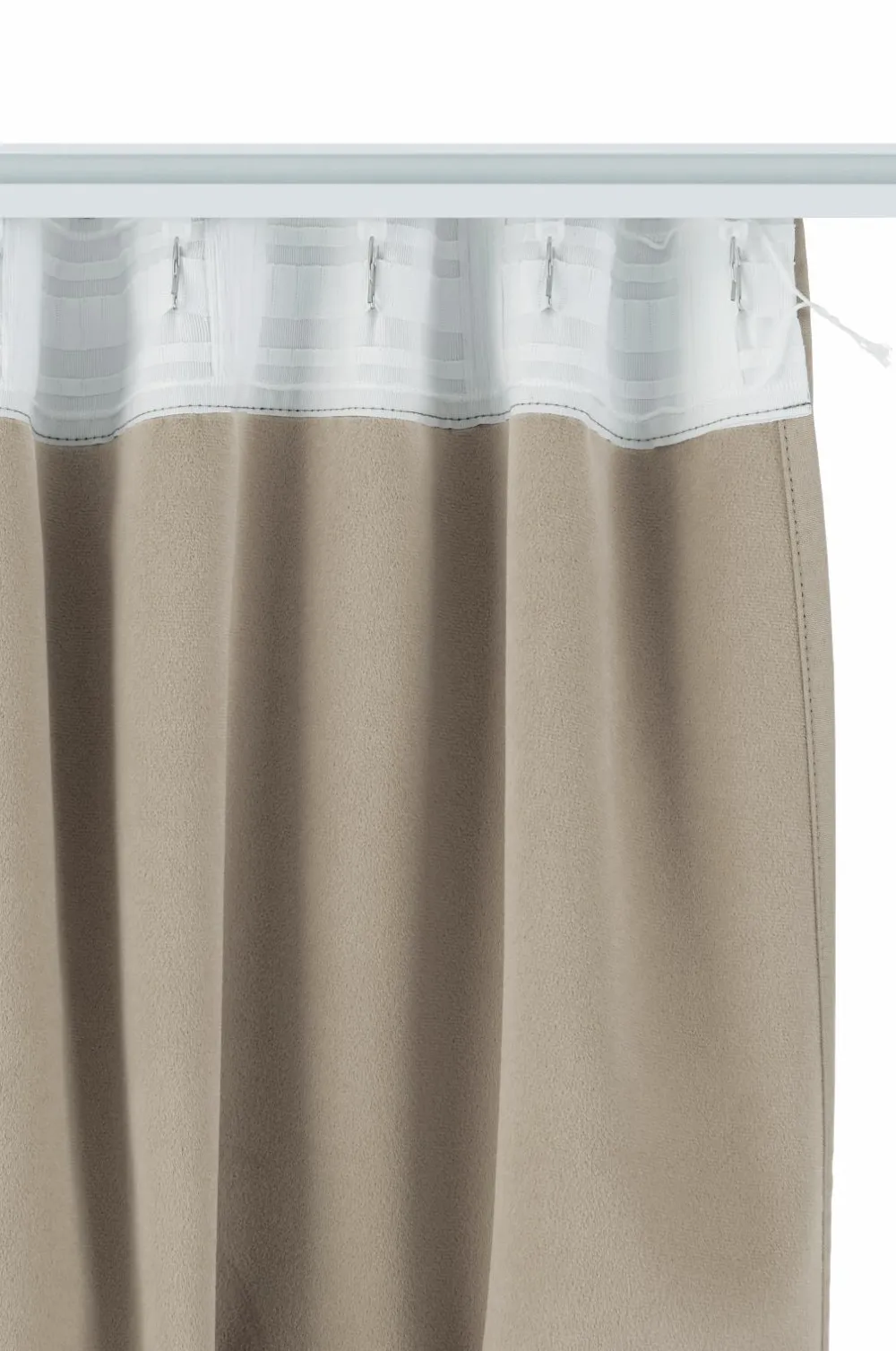 Multibåndslængde i dobbelte lag med høj mørklæggende effekt. Et lag er polyester med vævede tråde og et lag er polyester fleece. Kraftige stoffer i et rum giver også en lyddæmpende effekt.