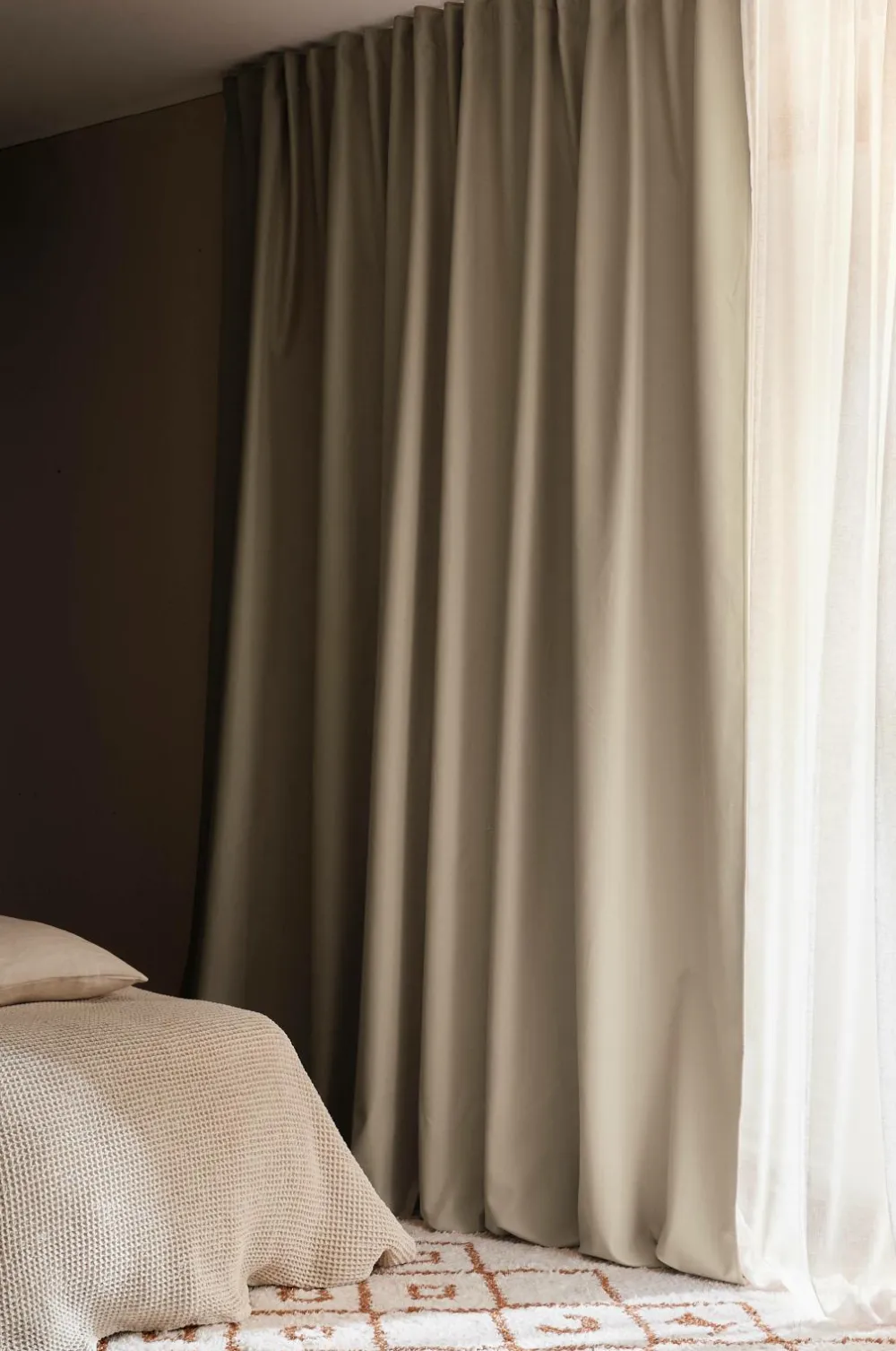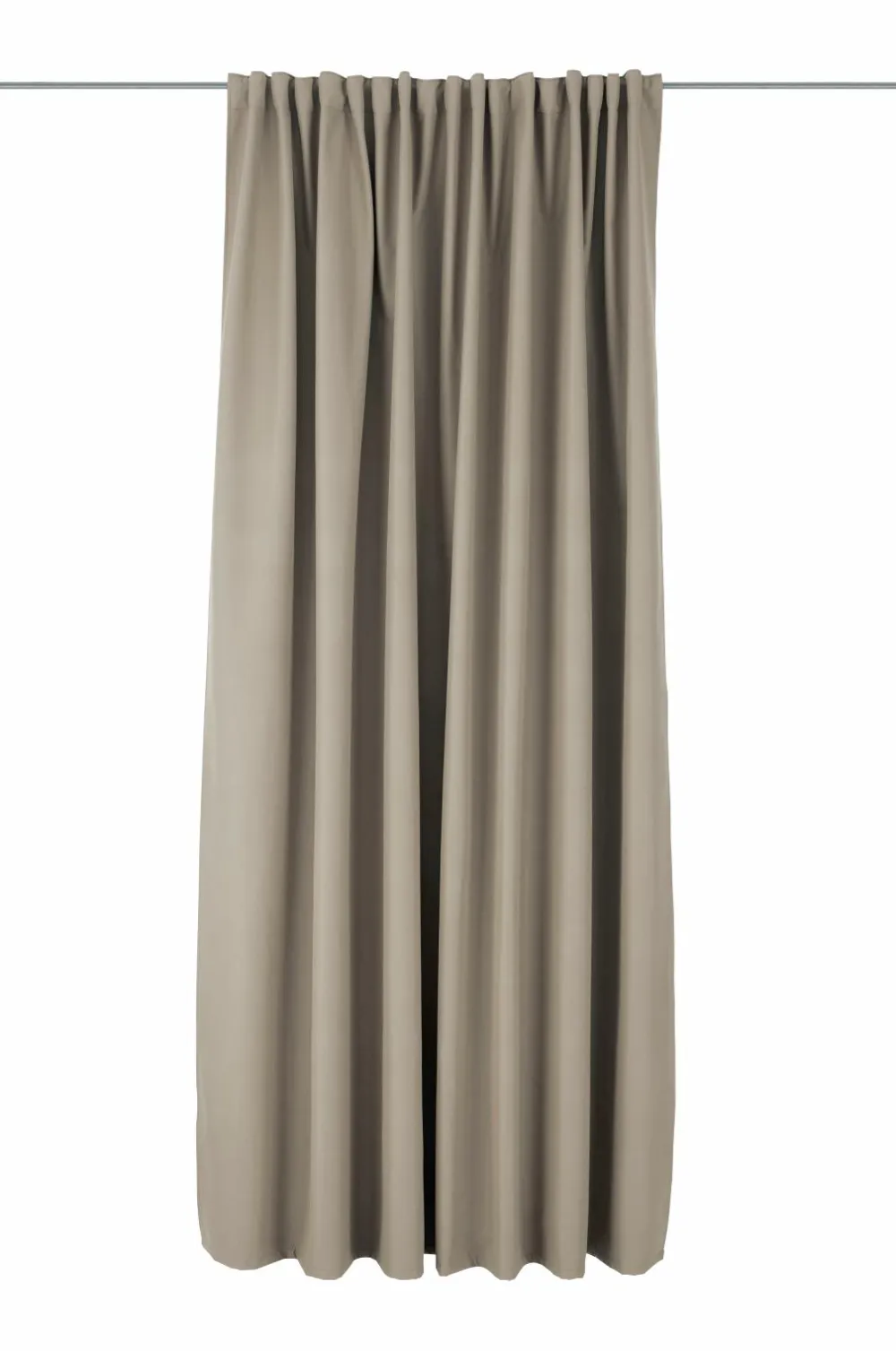 Ekstra bred multibåndslængde i dobbeltlag med høj mørklægningseffekt. Et lag er polyester med vævede tråde og et lag er polyesterfleece. Kraftigt stoffer i et rum giver også en lyddæmpende effekt.