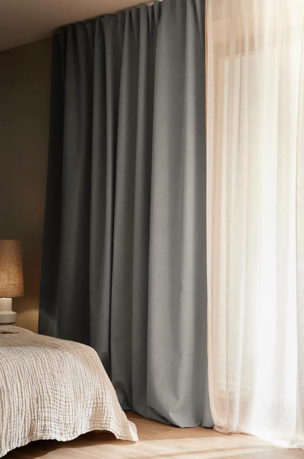 Ekstra bred multibåndslængde med høj mørklægningseffekt. Fremstillet af meleret polyester med indvævede sorte tråde med høj trådtæthed.