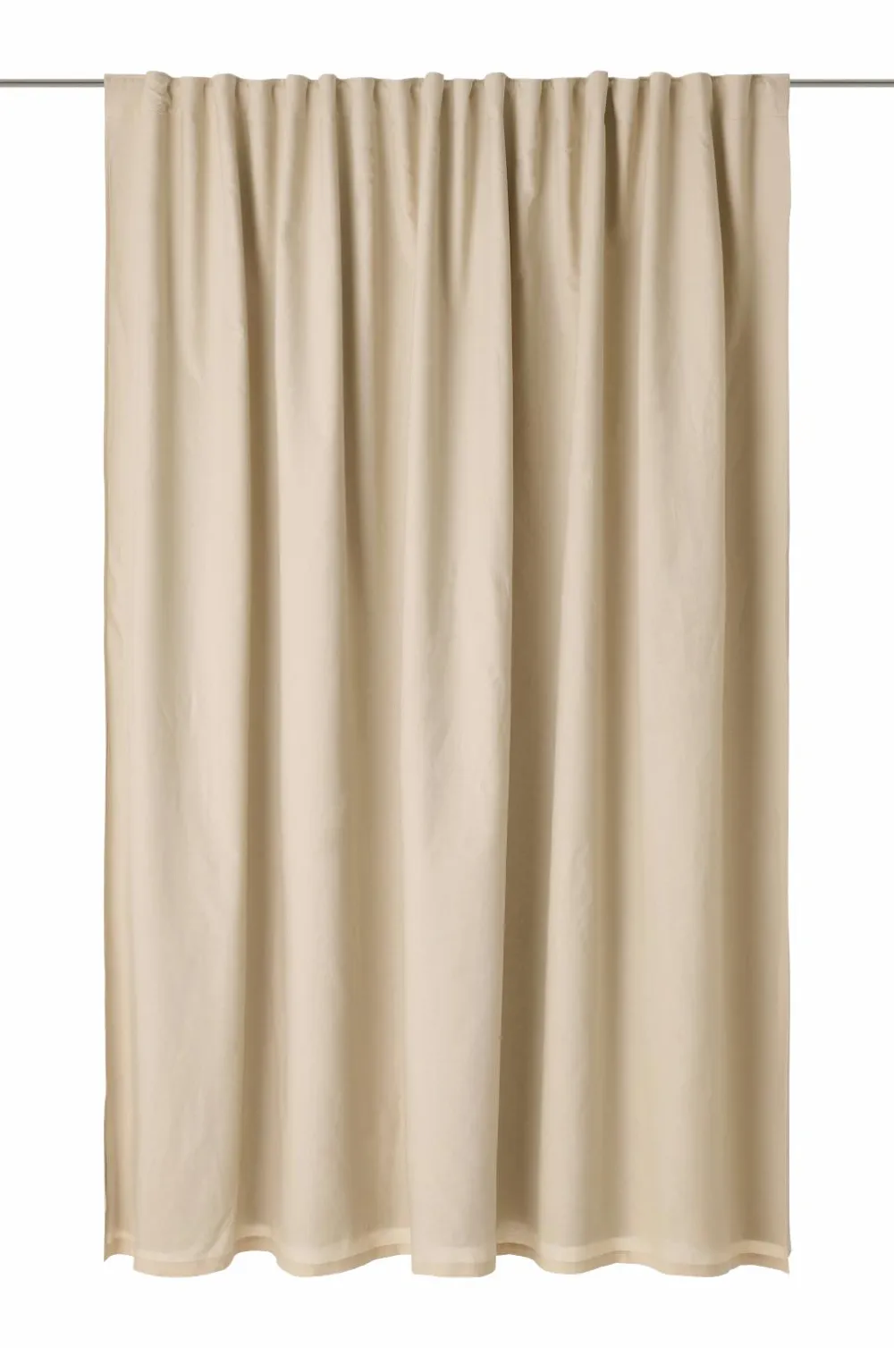 To-lags mørklægningsgardin, et lag i hørblanding og et mørklægningslag i genbrugspolyester.