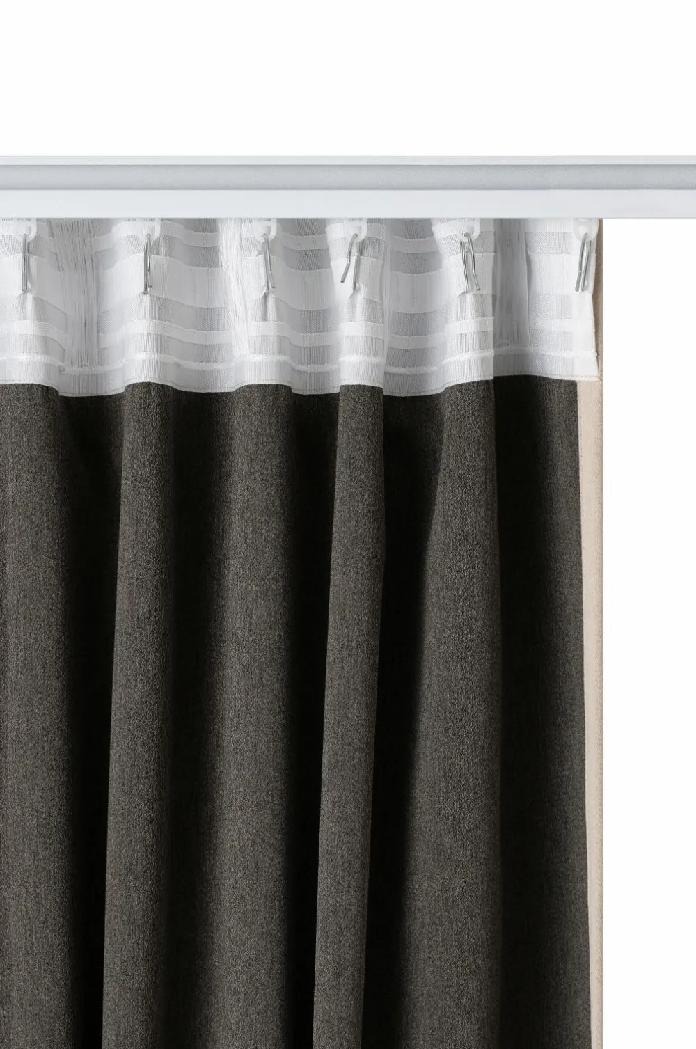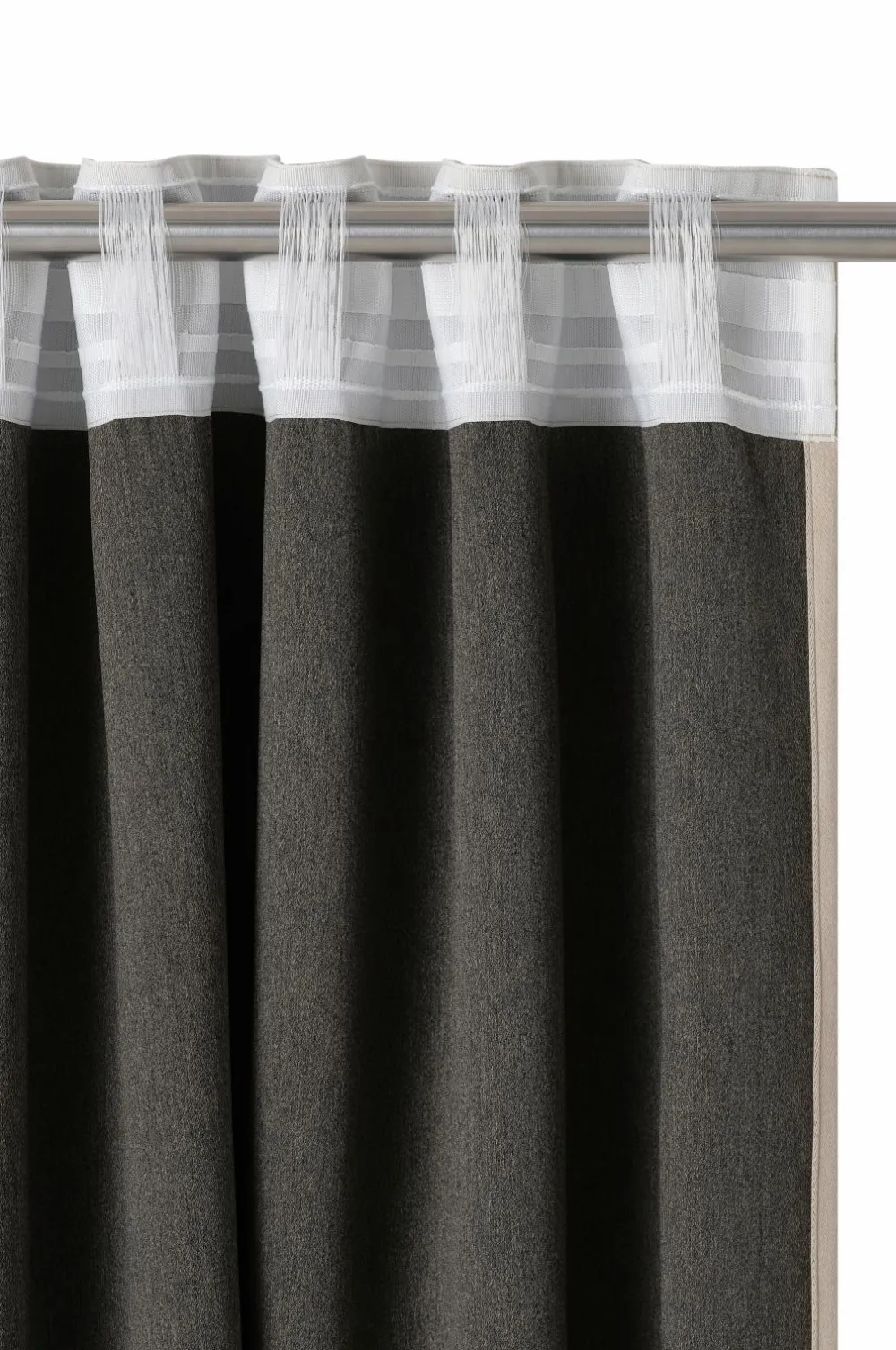• Multibåndet gør, at du enten kan hænge gardinerne direkte på en gardinstang gennem de skjulte stropper eller anvende ringe, nålekroge eller fingerkroge. Snoren i rynkebåndet gør, at du let kan skabe ensartede, flotte læg.
