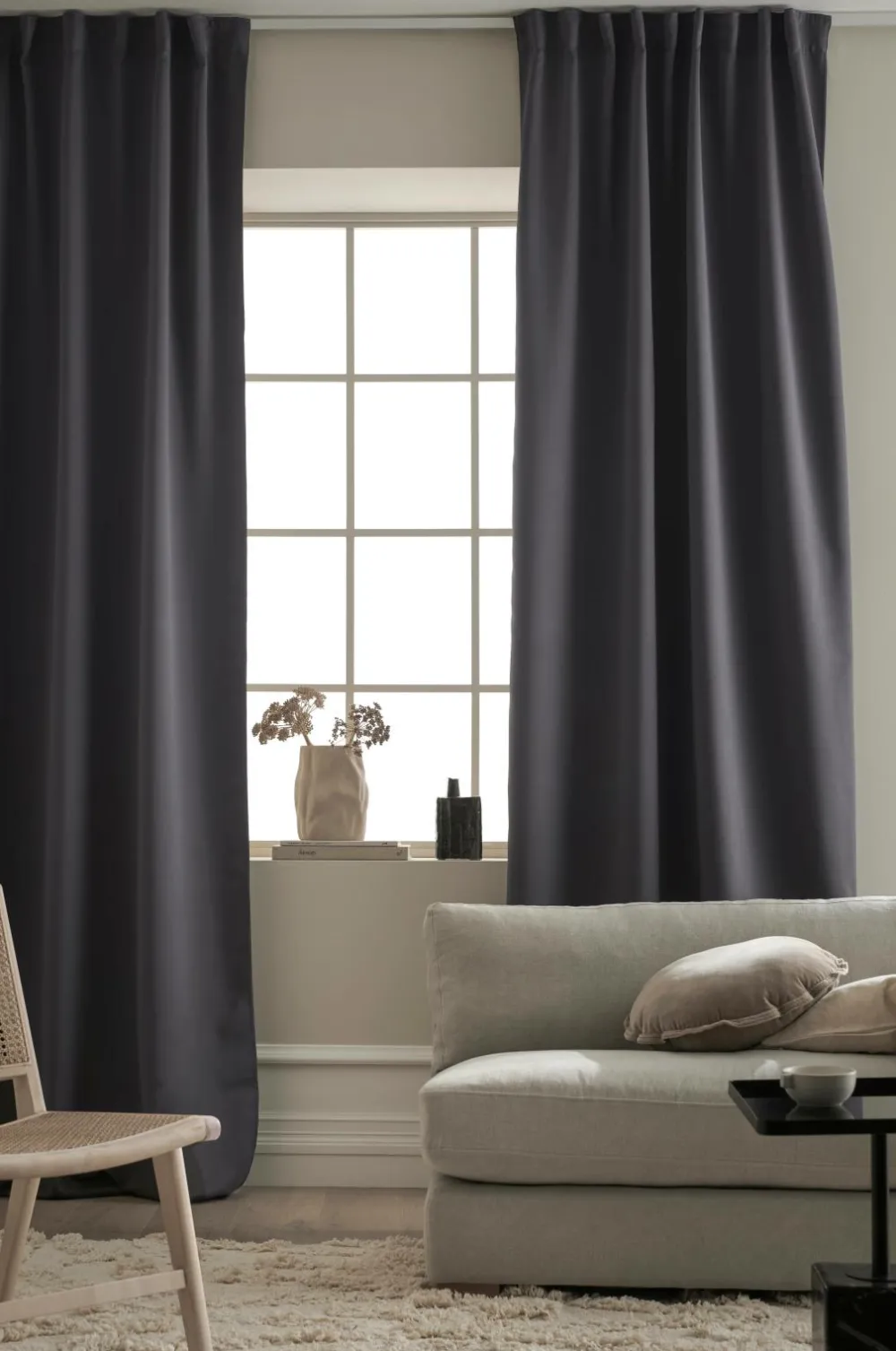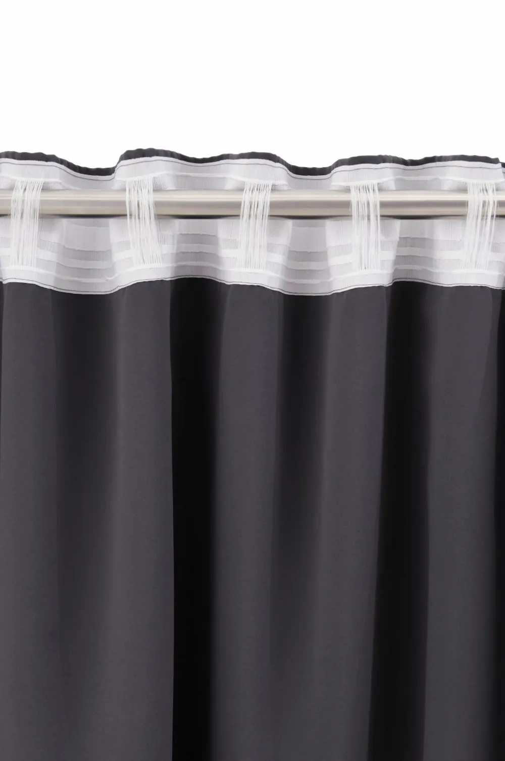 Gardinlængde med multibånd med indvævede sorte tråde som gør, at gardinet lukker lyset ude. Multibåndet gør, at du enten kan hænge gardinet direkte på en gardinstang gennem de skjulte stropper eller anvende ringe, nålekroge eller fingerkroge. Bredde 140 cm. Findes i flere forskellige længder. Sælges i 1-pak.