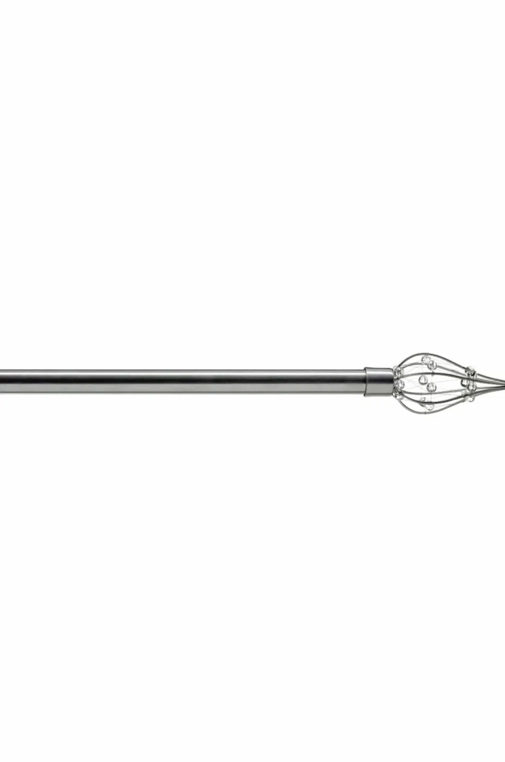 Gardinstangsæt af metal som består af 3 stænger. Justerbar længde 67-190 cm. 2 stk. med diameter 16 mm, 1 stk. med diameter 19 mm. 2 stk. vægbeslag. Vægafstand 7 cm. Endeknopper i metal og perler af plast (11 cm). Skruer og plugs af plast medfølger.