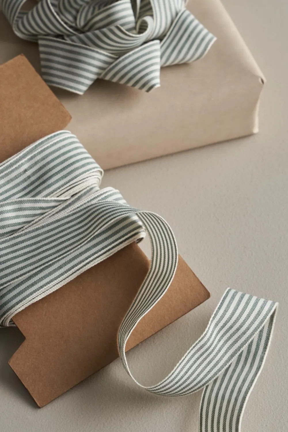Stribevævet gavebånd af 100% polyester. Bredde 25 mm, længde 20 m.