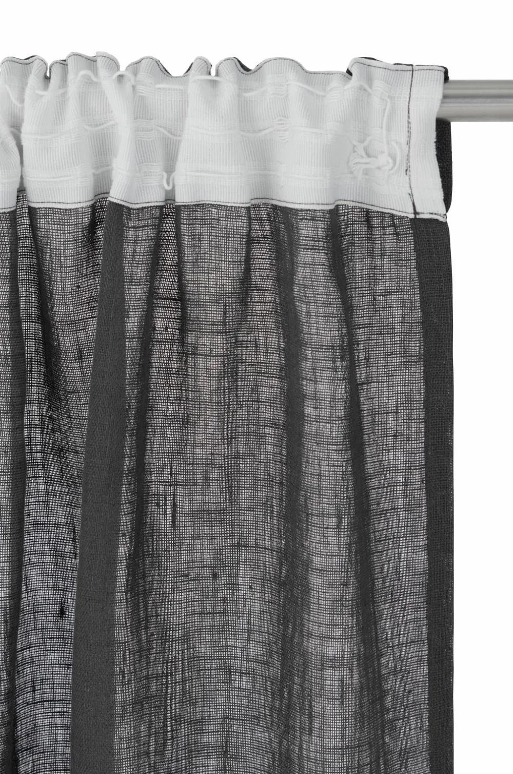 To multibåndsgardiner af hør i vasket, tynd vævet kvalitet. Multibåndet gør, at du enten kan hænge gardinerne direkte på en gardinstang eller anvende ringe og nålekroge (ikke fingerkroge). Snore i rynkebåndet gør at du let kan skabe ensartede, flotte læg. Bredde 145 cm. Findes i flere forskellige længder.