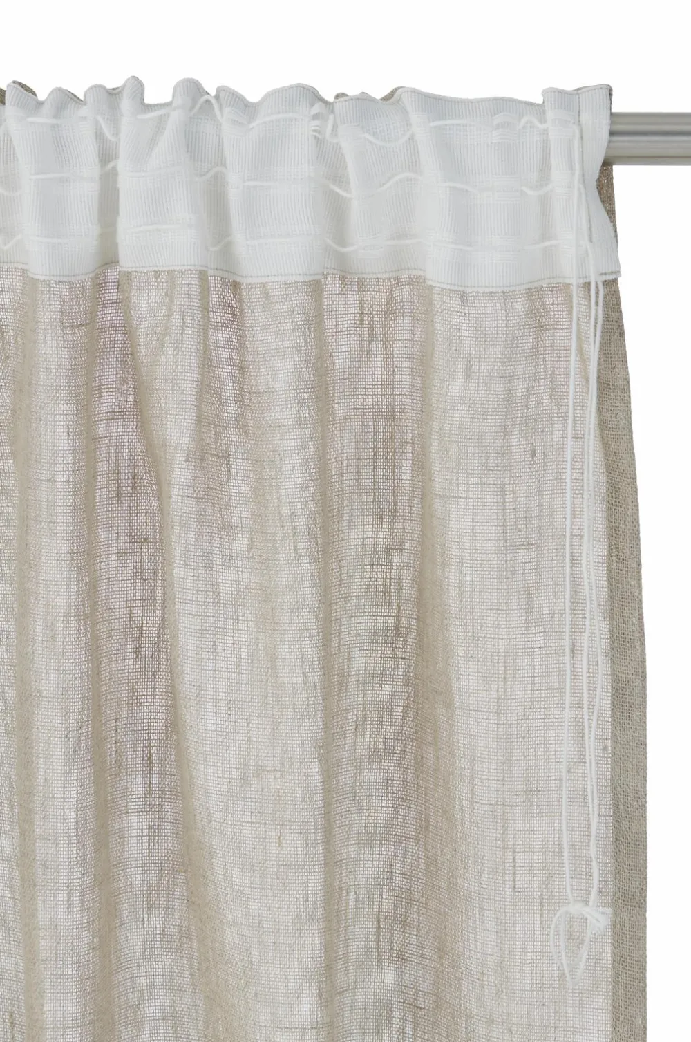 To multibåndsgardiner af hør i vasket, tynd vævet kvalitet. Multibåndet gør, at du enten kan hænge gardinerne direkte på en gardinstang eller anvende ringe og nålekroge (ikke fingerkroge). Snore i rynkebåndet gør at du let kan skabe ensartede, flotte læg. Bredde 145 cm. Findes i flere forskellige længder.