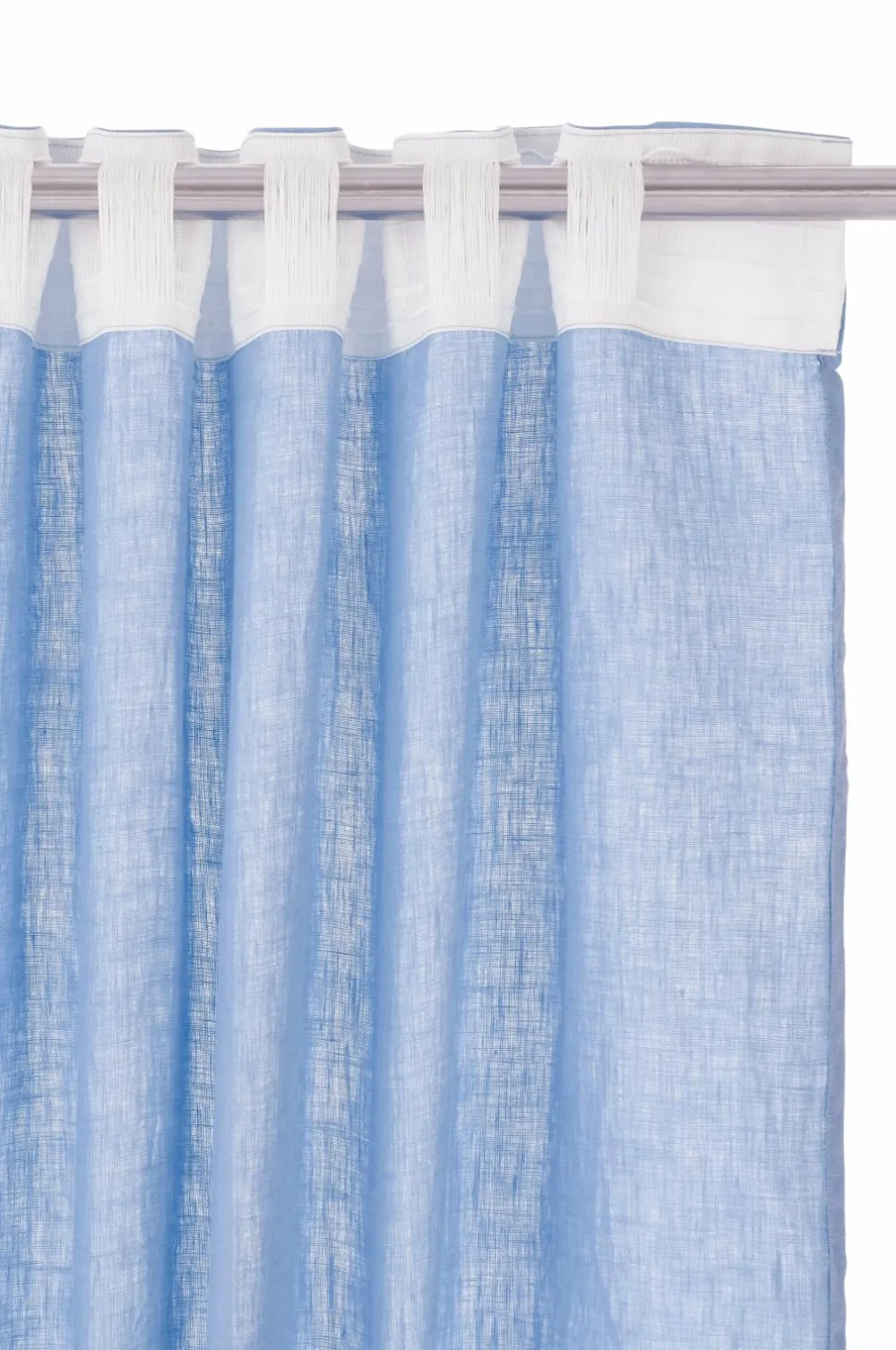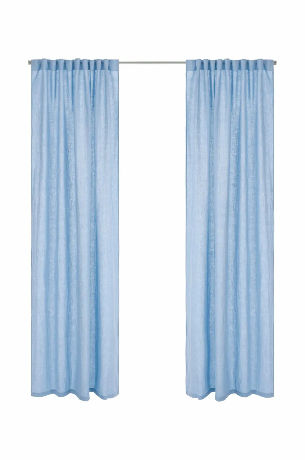 To multibåndslængder i vasket hør med smuk struktur. Multibåndet gør, at du enten kan hænge gardinerne direkte på en gardinstang gennem de skjulte stropper eller anvende ringe, nålekroge eller fingerkroge. Snoren i rynkebåndet gør, at du let kan skabe ensartede, flotte læg. Kan også bruges med rynkebåndskrog. Bredde 135 cm. Findes i flere længder.