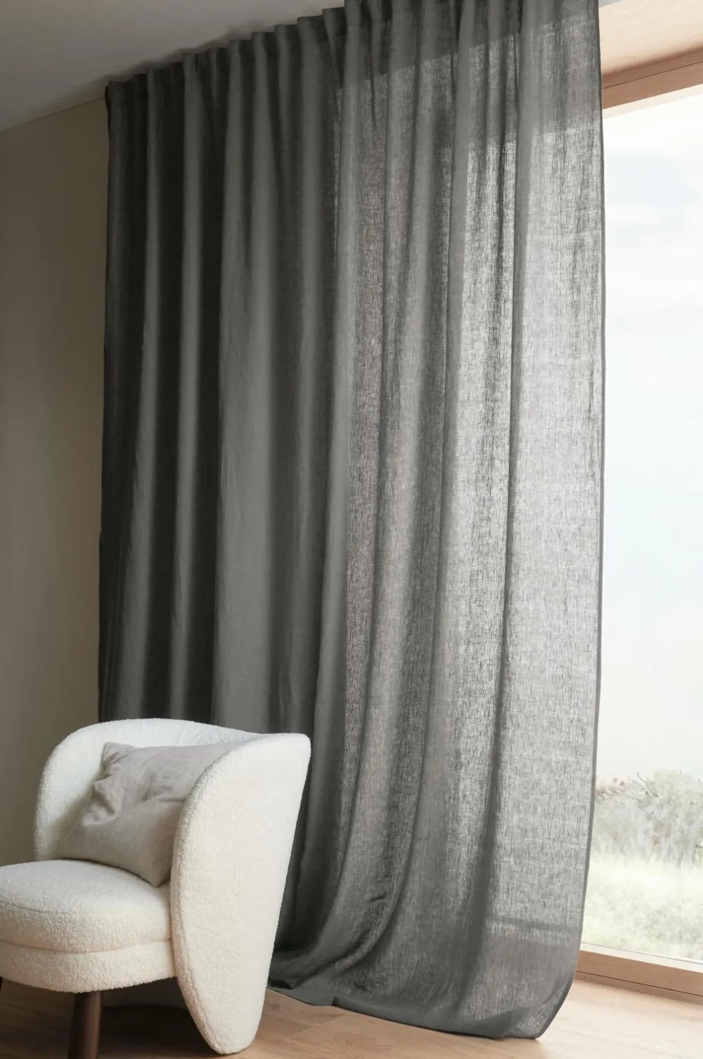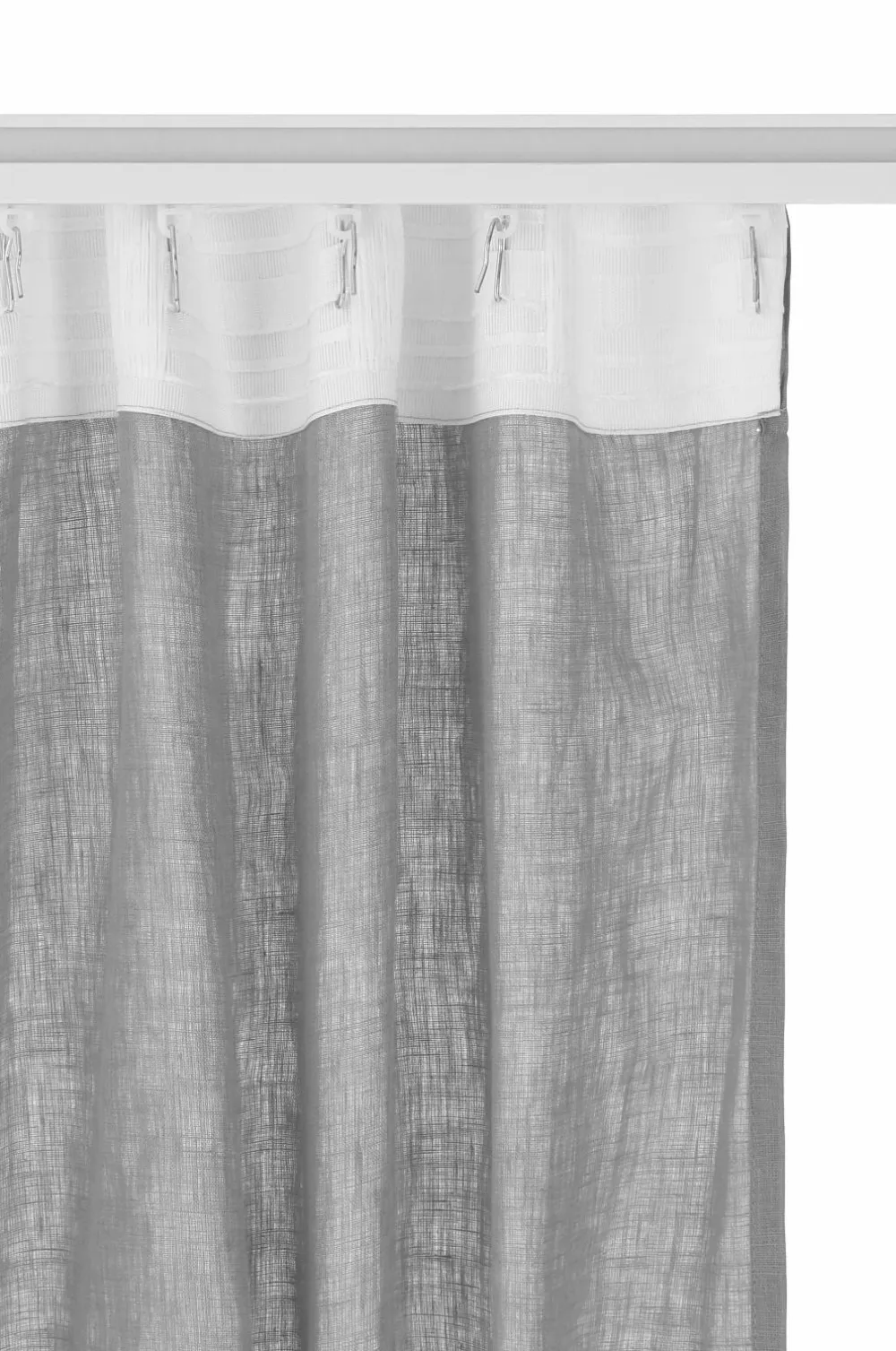 En ekstra bred multibåndslængde i vasket hør med smuk struktur. Multibåndet gør, at du enten kan hænge gardinet direkte på en gardinstang gennem de skjulte stropper eller anvende ringe, nålekroge eller fingerkroge. Snoren i rynkebåndet gør, at du let kan skabe ensartede, flotte læg. Kan også bruges med rynkebåndskrog. Bredde: 270 cm. Længde: 300 cm.